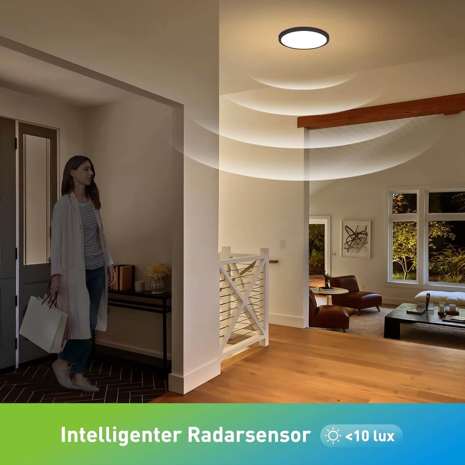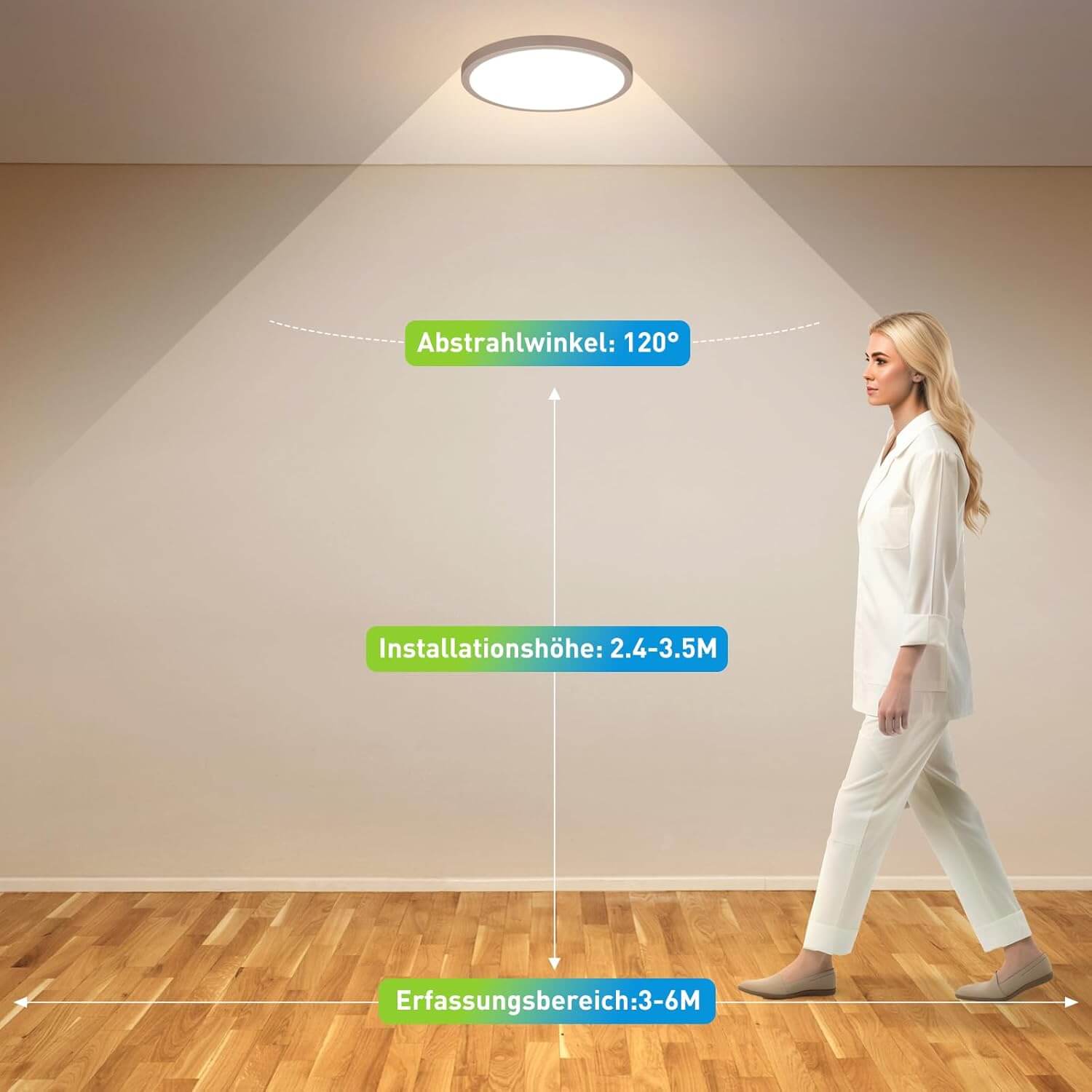 Moderna stropna luč s senzorjem gibanja in nastavljivo barvno temperaturo je idealna za hodnike, stopnišča, garaže in kuhinje. Omogoča udobno osvetlitev z minimalno porabo energije.