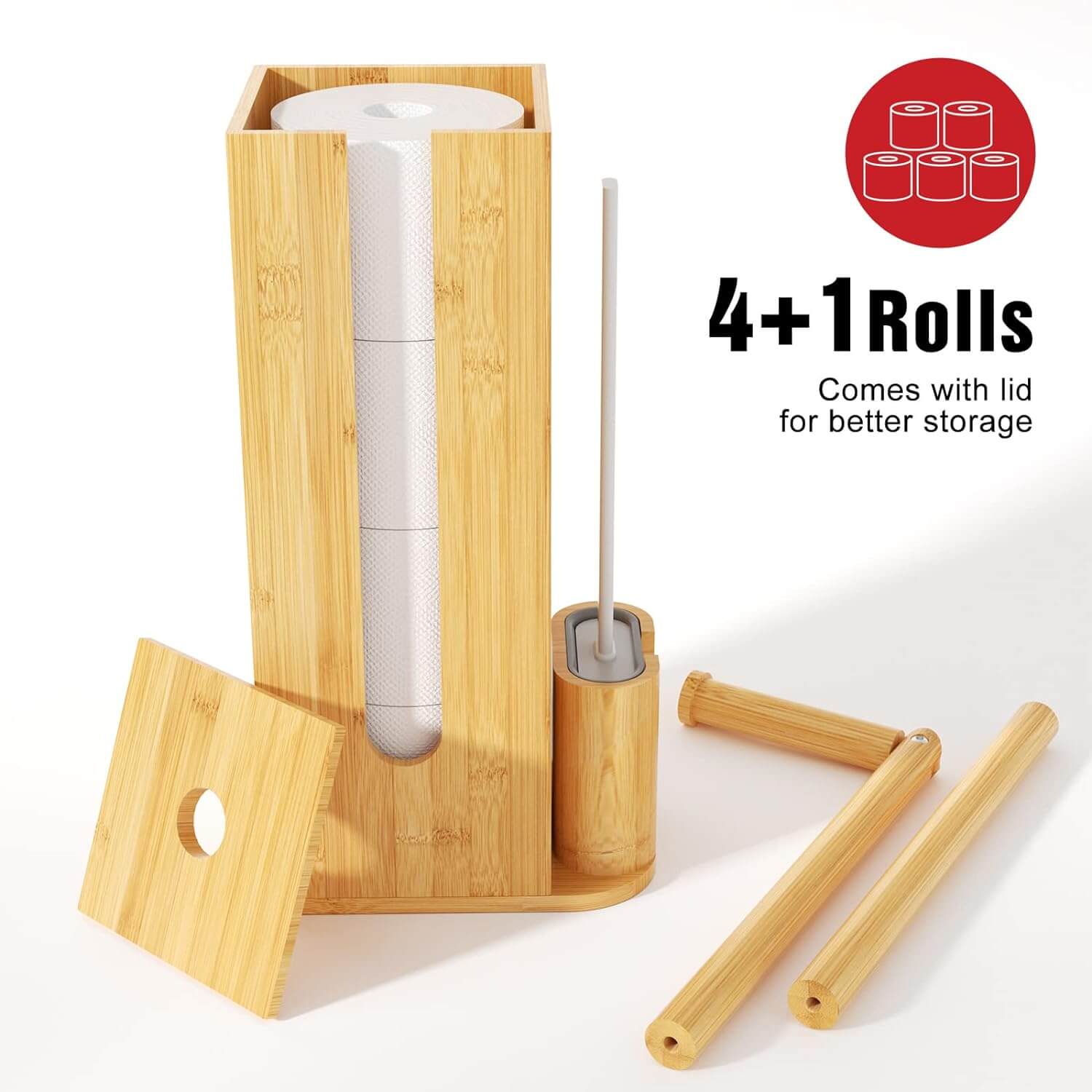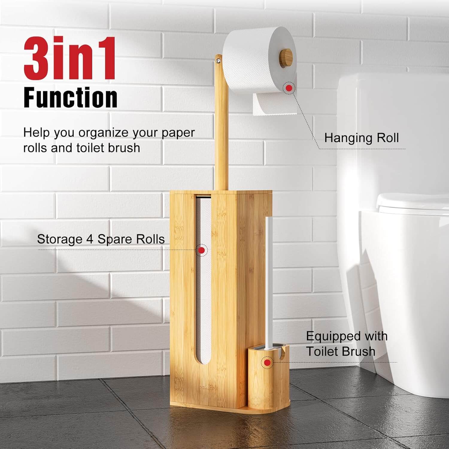 Praktična rešitev za vašo kopalnico, ki združuje držalo za toaletni papir, prostor za shranjevanje in krtačo za hitro čiščenje stranišča.