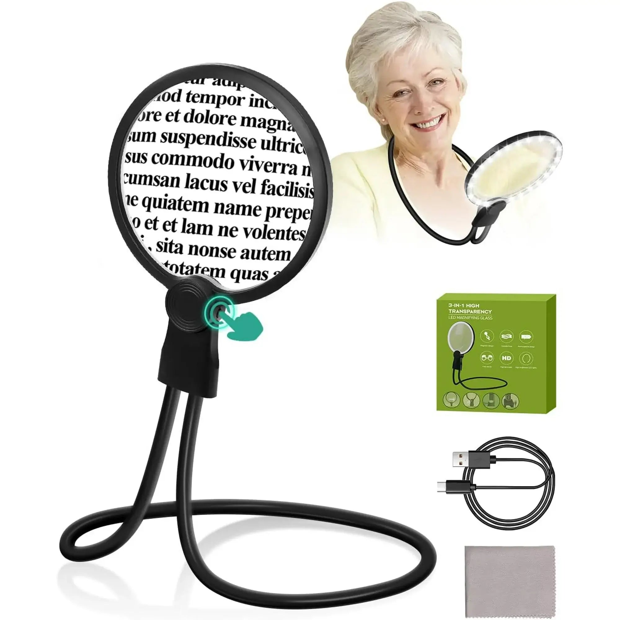 Inovativno povečevalno steklo za branje, popravila, hobije in delo, zasnovano za udobje in visoko ločljivost.
