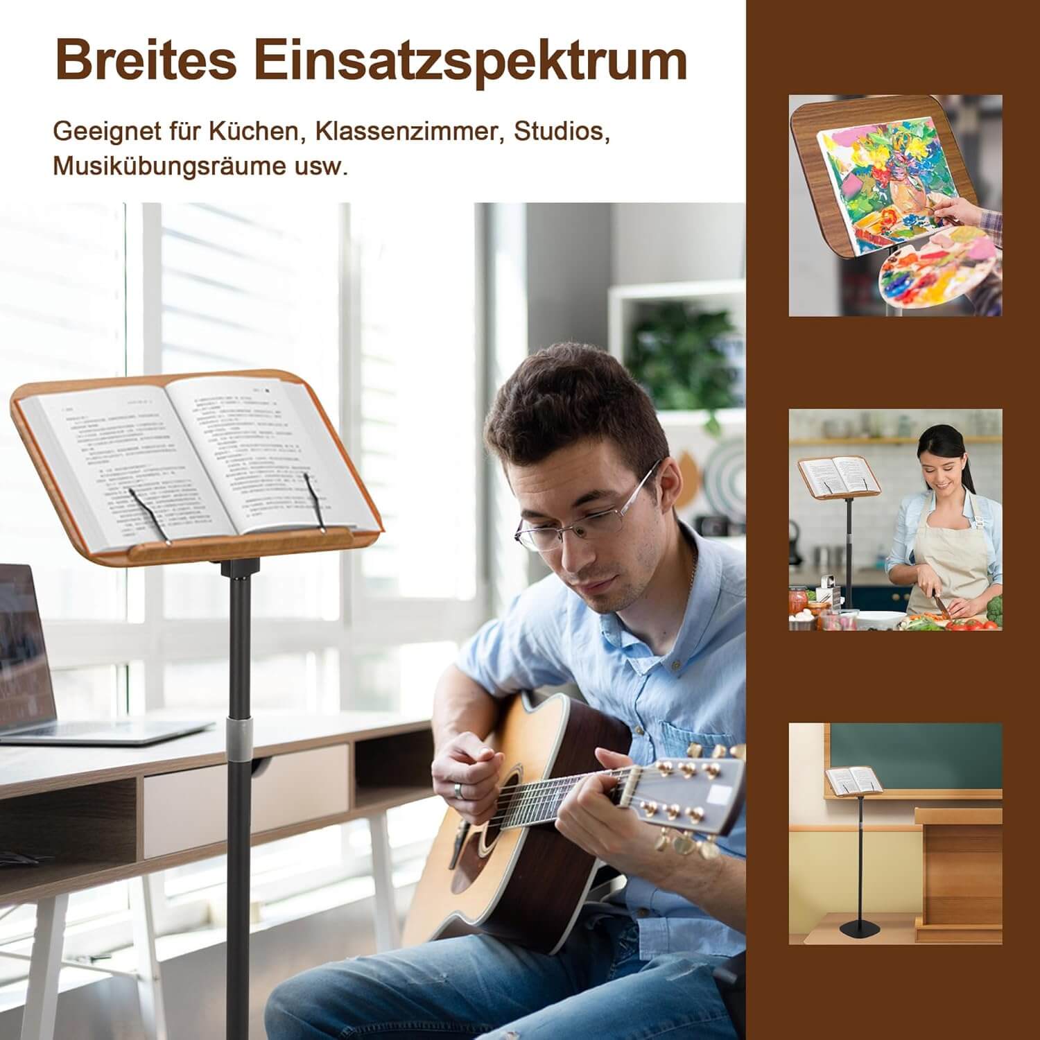 Univerzalna uporaba: Primerno za knjige, note, tablice, skicirke ali kuharske knjige; uporabno v kuhinji, učilnici, dnevni sobi ali ateljeju.