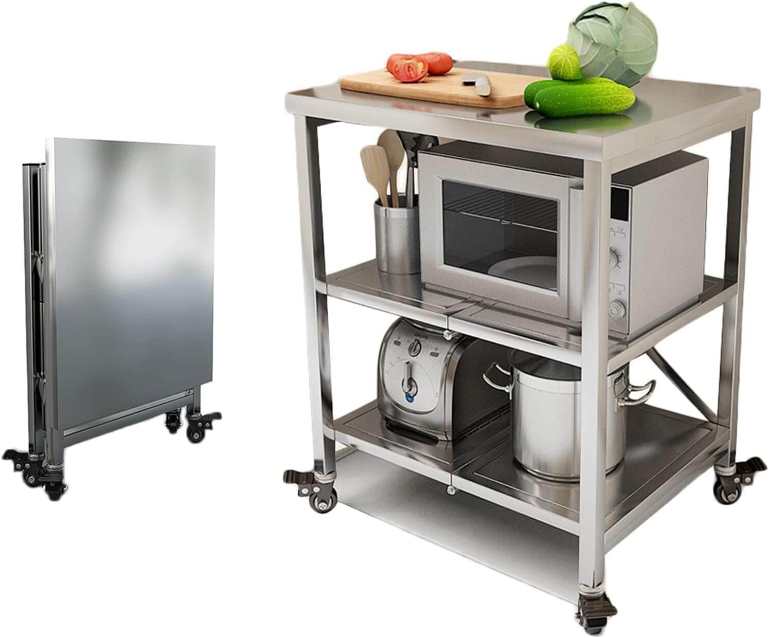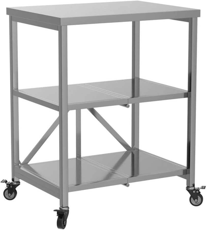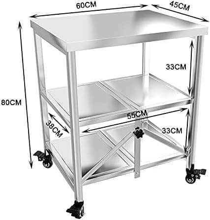 Ta robusten servirni voziček iz nerjavečega jekla ponuja stabilno delovno površino, tri prostorne police in izjemno praktično zložljivo zasnovo. Primeren je za kuhinje, pisarne, garaže in profesionalne prostore, saj omogoča hitro premikanje, veliko nosilnost in učinkovito organizacijo.
