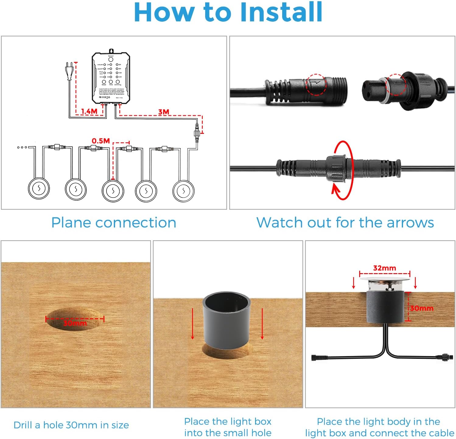 Vsebina paketa: 10 × svetilka, 10 × črna ohišja, 1 × transformator, navodila