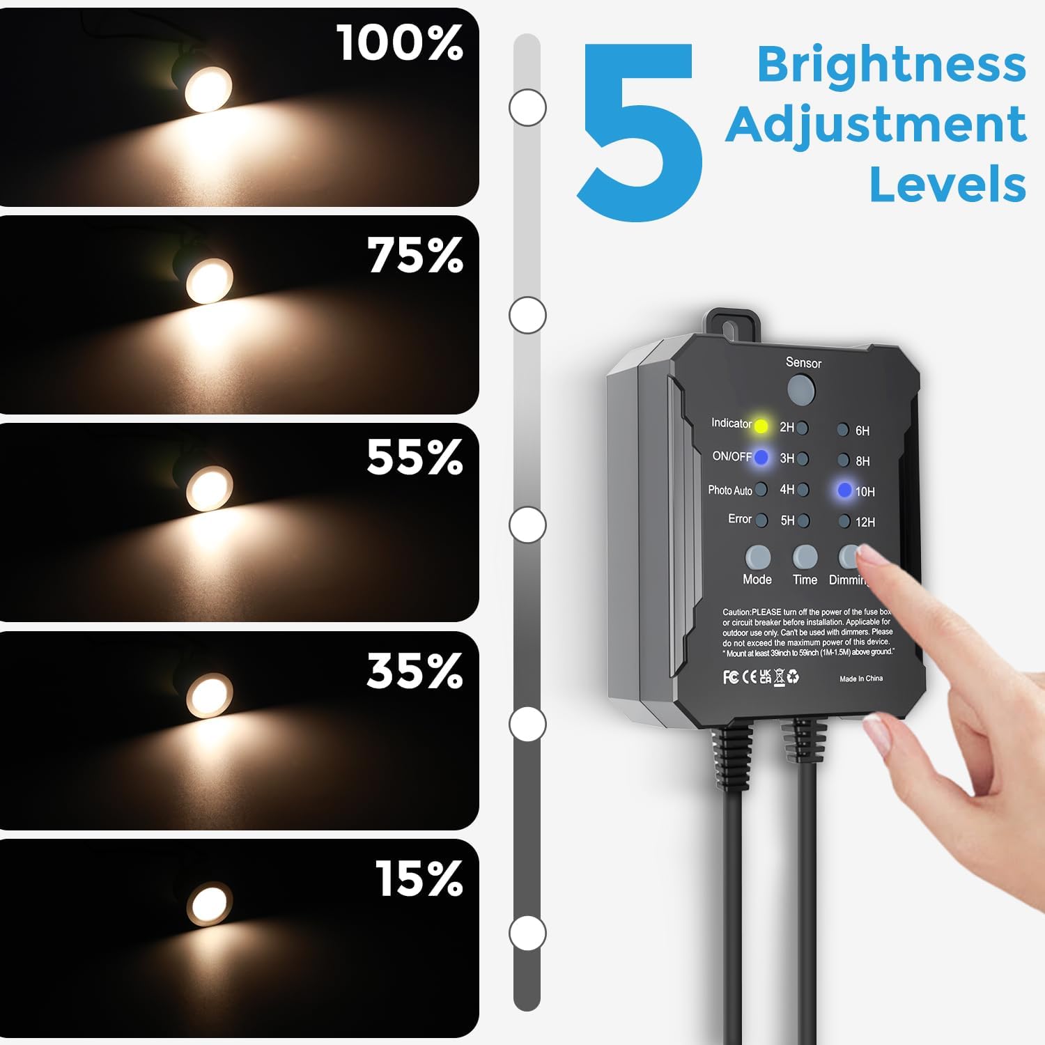 Zatemnjevanje in prilagodljiv nadzor: 5 stopenj svetlosti in 8 časovnih načinov delovanja omogočajo popolno prilagoditev osvetlitve za različne priložnosti.