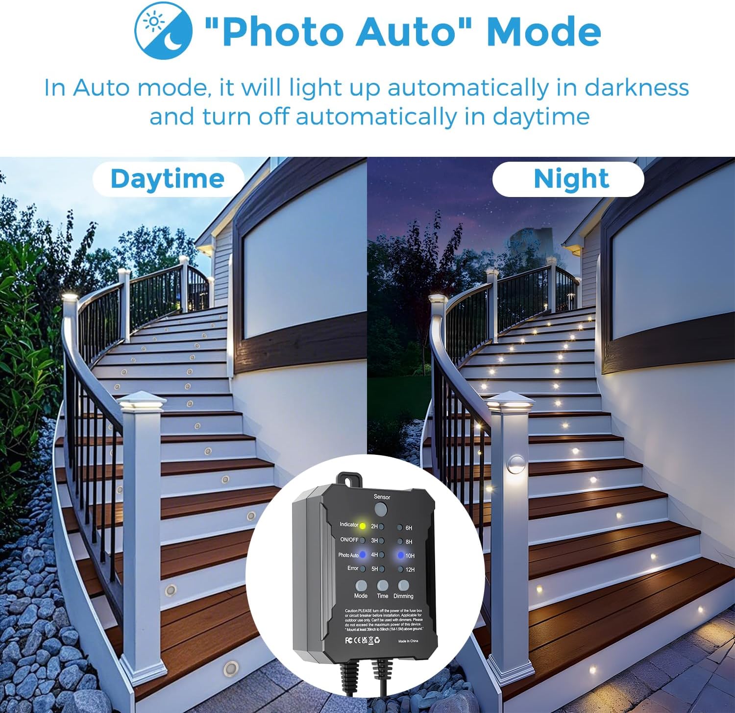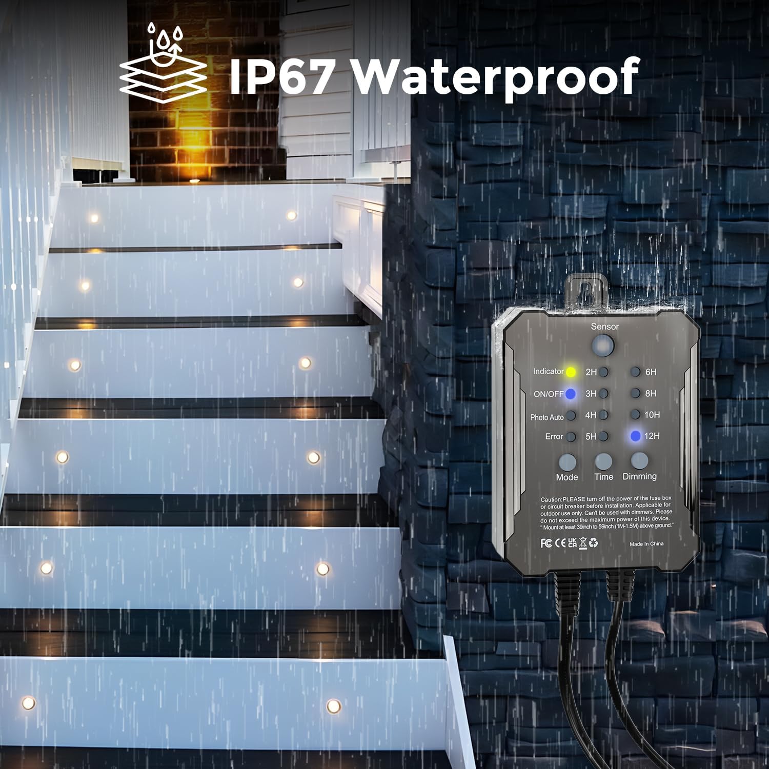 Senzor mraka (fotocelica): svetilke se samodejno vklopijo ob mraku in izklopijo ob zori – za energijsko varčno in brezskrbno delovanje.