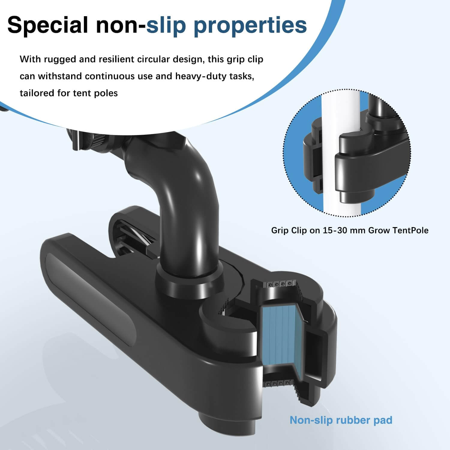 Močna pritrditev: Nastavek s sponko ima debelo gumirano podlogo, ki ščiti palice (16–22 mm) pred praskami ter drži ventilator stabilno.