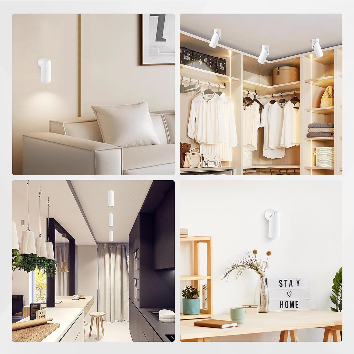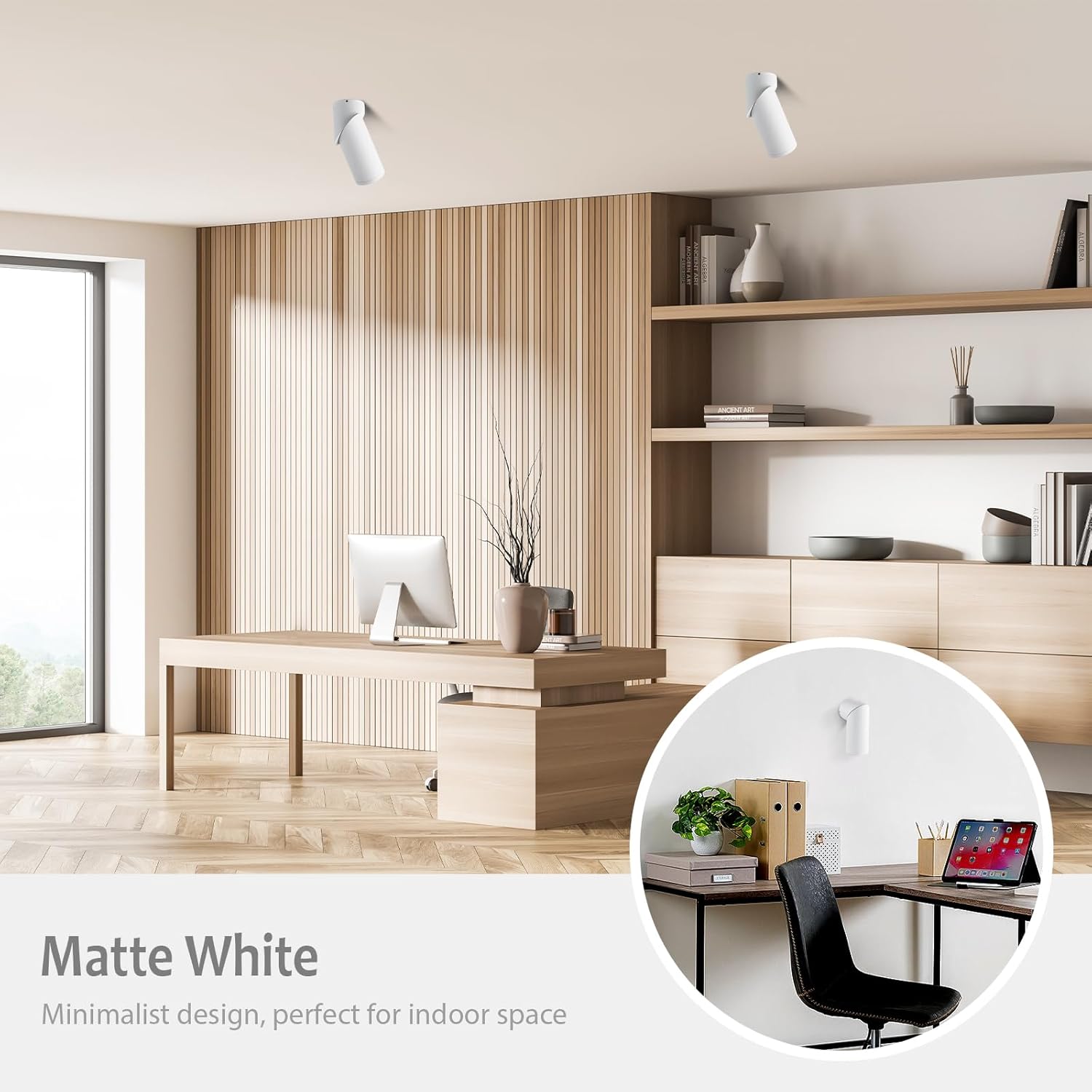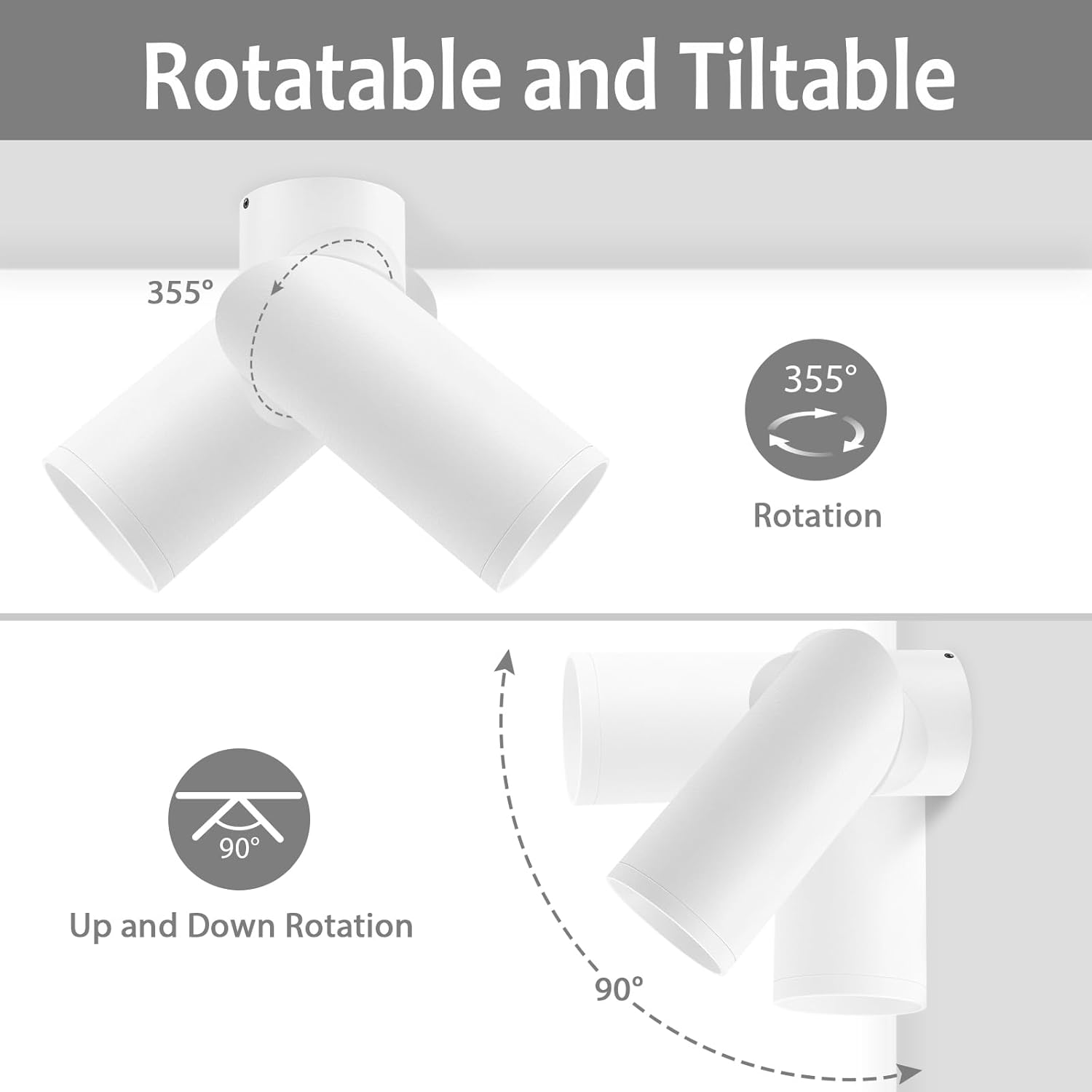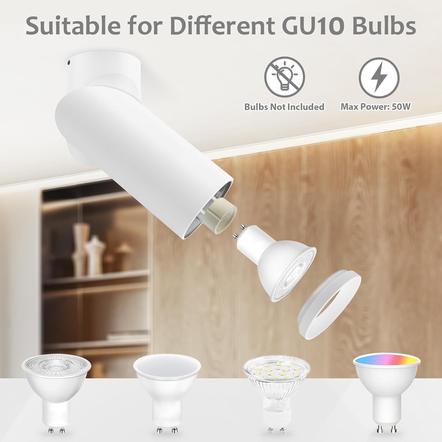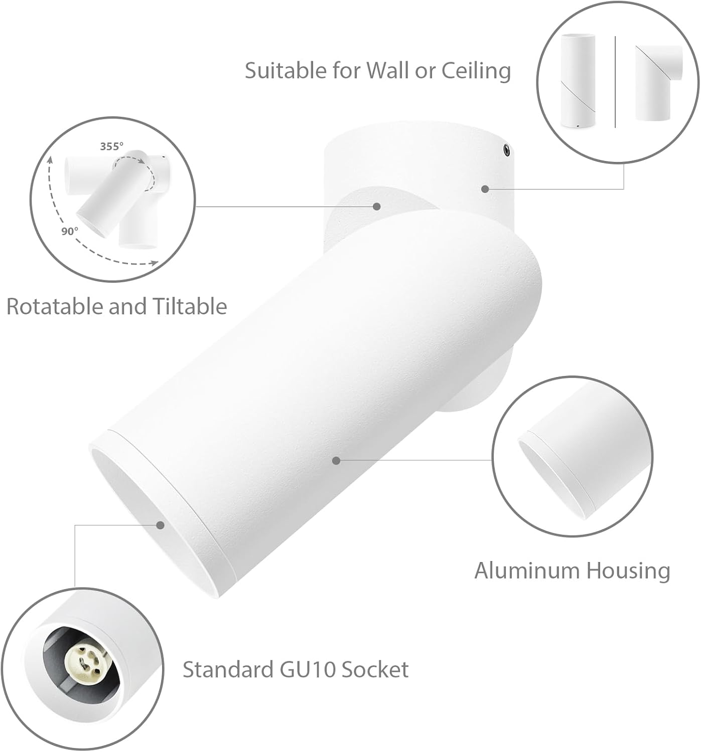 Vrtljiva nadgradna svetilka iz aluminija z GU10 grlom omogoča natančno usmerjeno osvetlitev prostora. Moderen in preprost dizajn se odlično poda v dnevne sobe, hodnike ali spalnice. Svetilka ne potrebuje transformatorja in se enostavno priključi na 230 V omrežje.