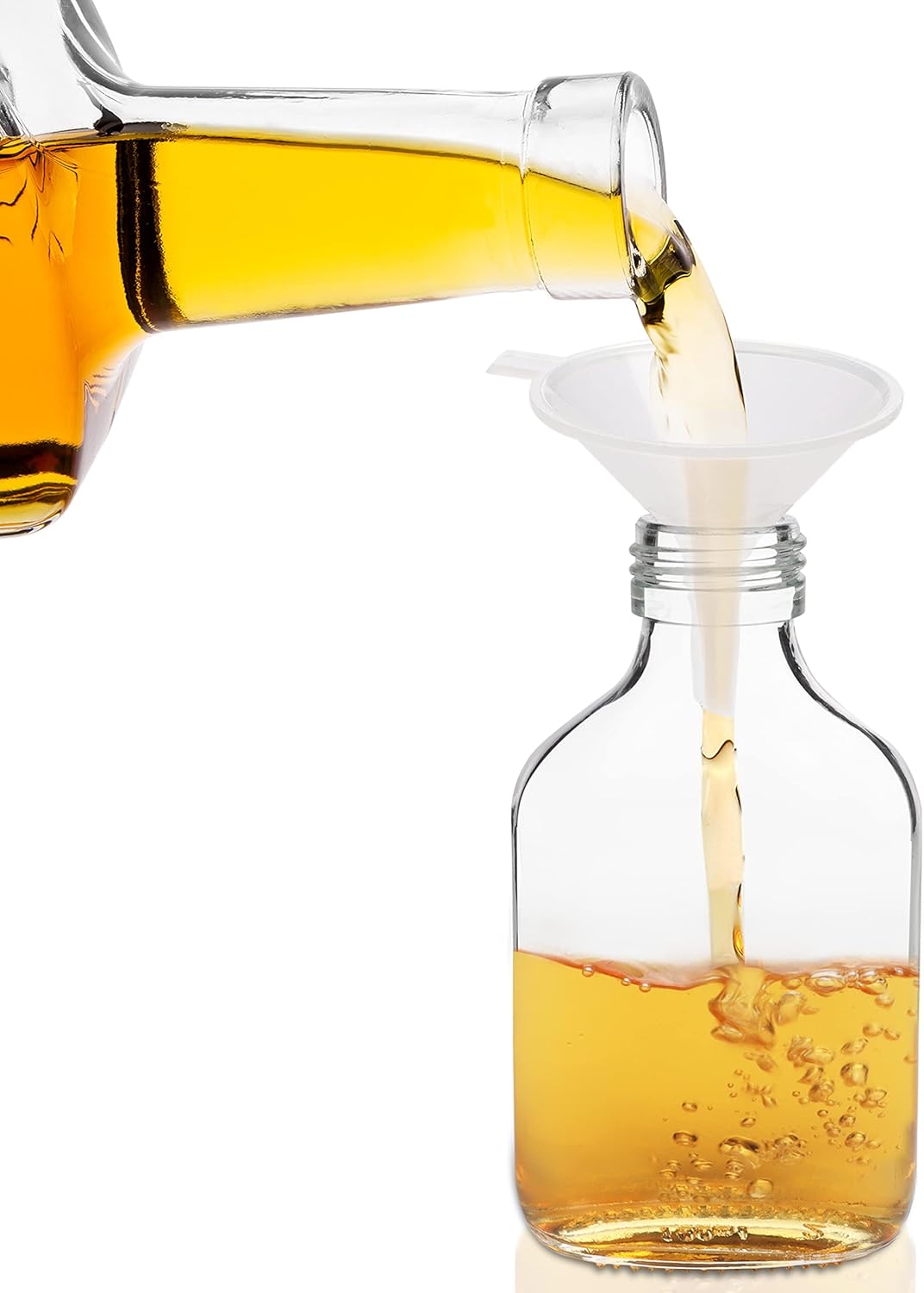 Praktičen komplet majhnih stekleničk, idealnih za domača polnila, darila, zabave, poroke ali degustacije. Stekleničke imajo 50 ml prostornine in priložen lijak za lažje polnjenje brez polivanja.