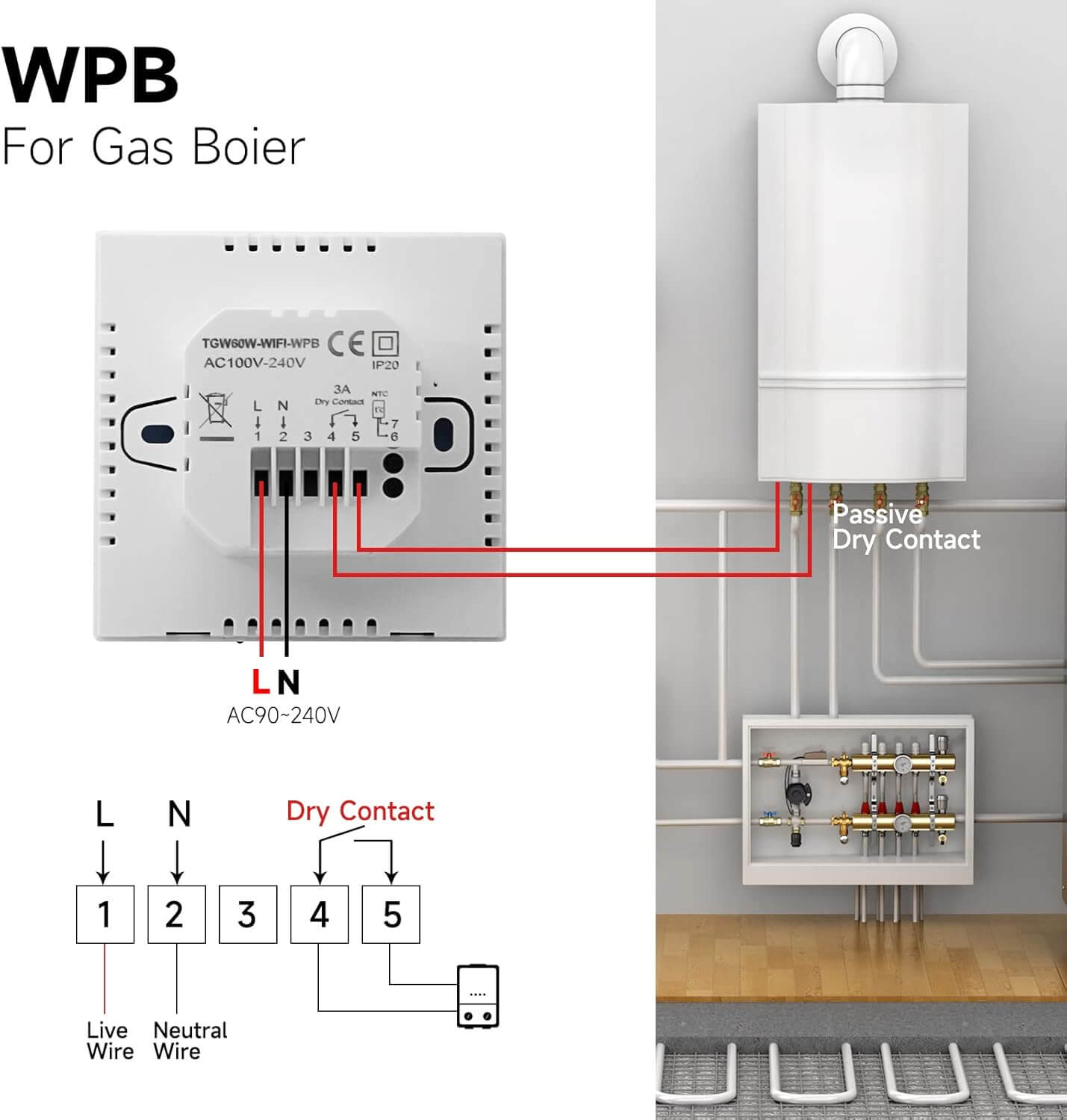 Pametni termostat omogoča natančen in varčen nadzor ogrevanja plinskih ali vodnih kotlov. Preko aplikacije Tuya lahko ogrevanje upravljaš na daljavo, nastaviš urnike, prilagodiš temperaturo ter optimiziraš porabo energije. Odlikuje ga čist, moderen LCD zaslon na dotik in enostavna montaža na steno.