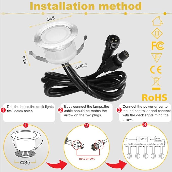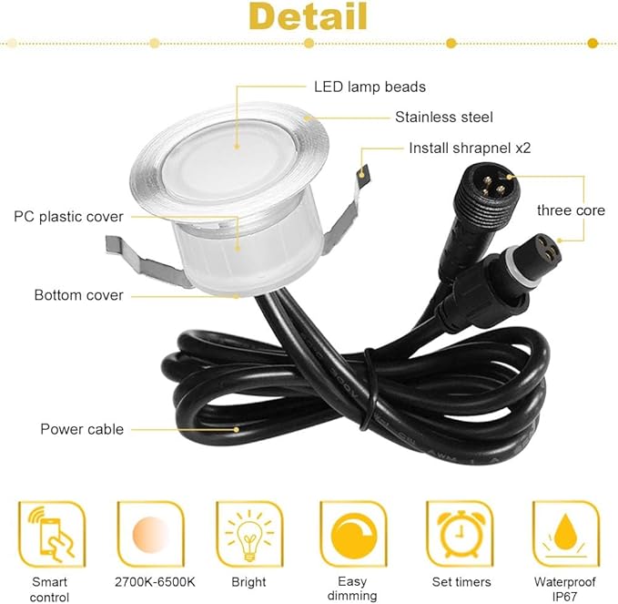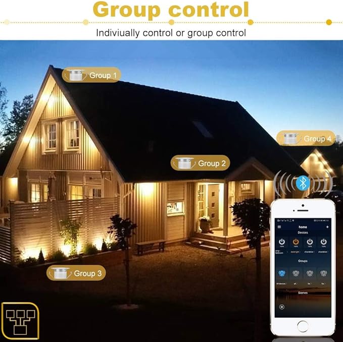 Bluetooth LED vgradne svetilke omogočajo prilagodljivo osvetlitev z nadzorom prek mobilne aplikacije. Svetilke so vodotesne IP67 in primerne za montažo v kopalnice, kuhinje, vrtove in terase. Zmožnost zatemnitve med toplo in hladno belo svetlobo omogoča ustvarjanje popolnega ambienta.