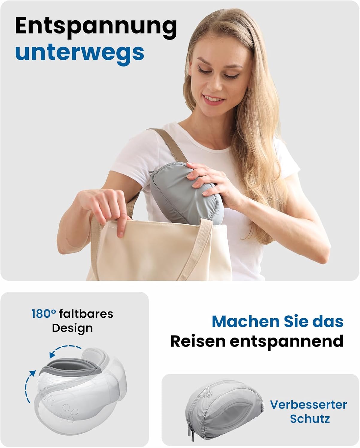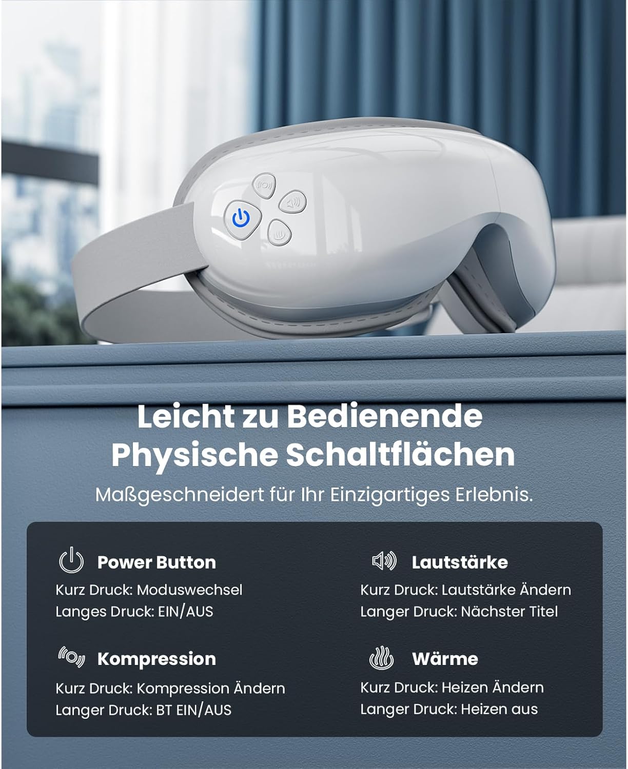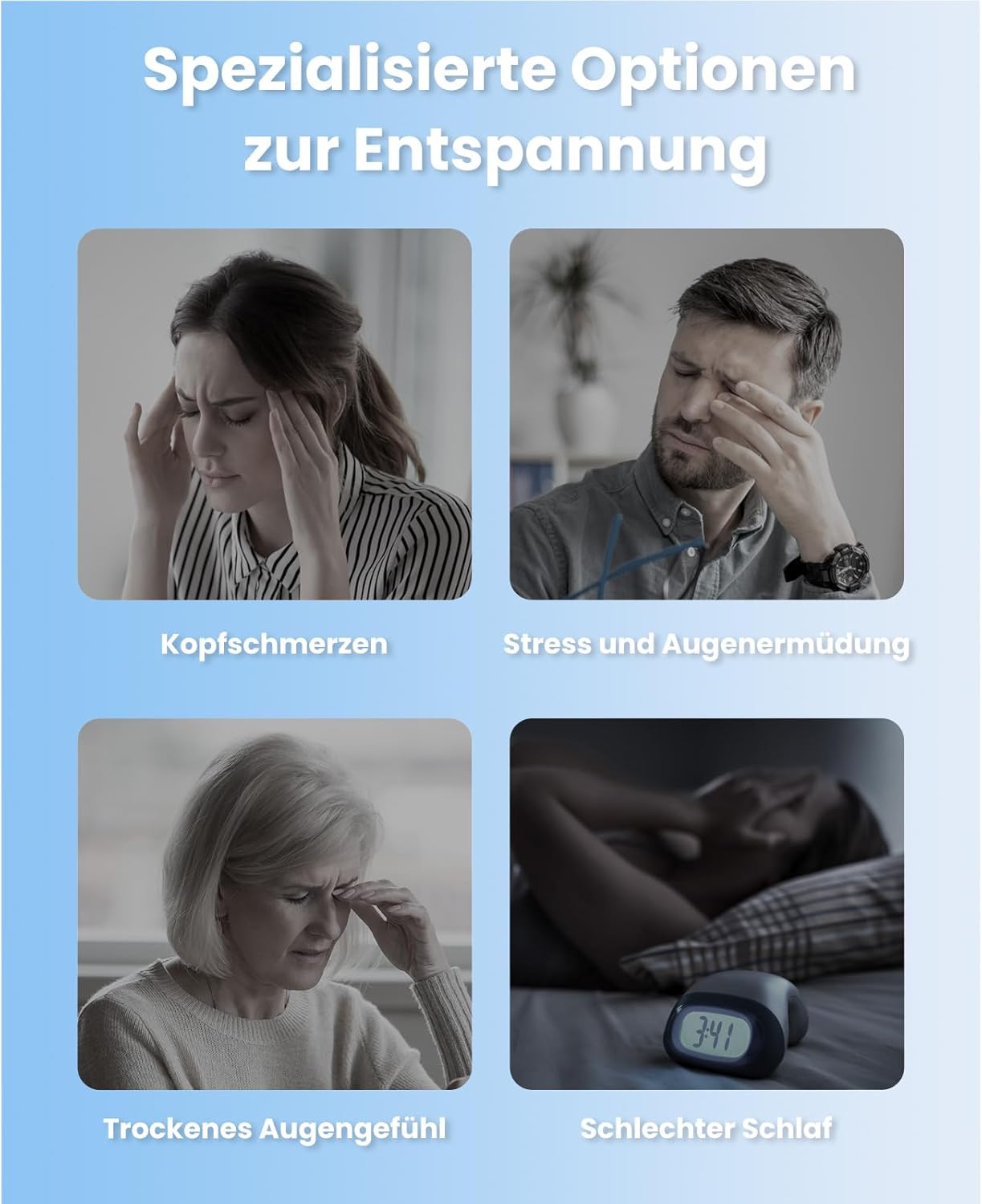 Udobna in varna uporaba: dvoplastne blazinice zmanjšujejo pritisk na oči, masaža poteka tiho (≤45 dB).
