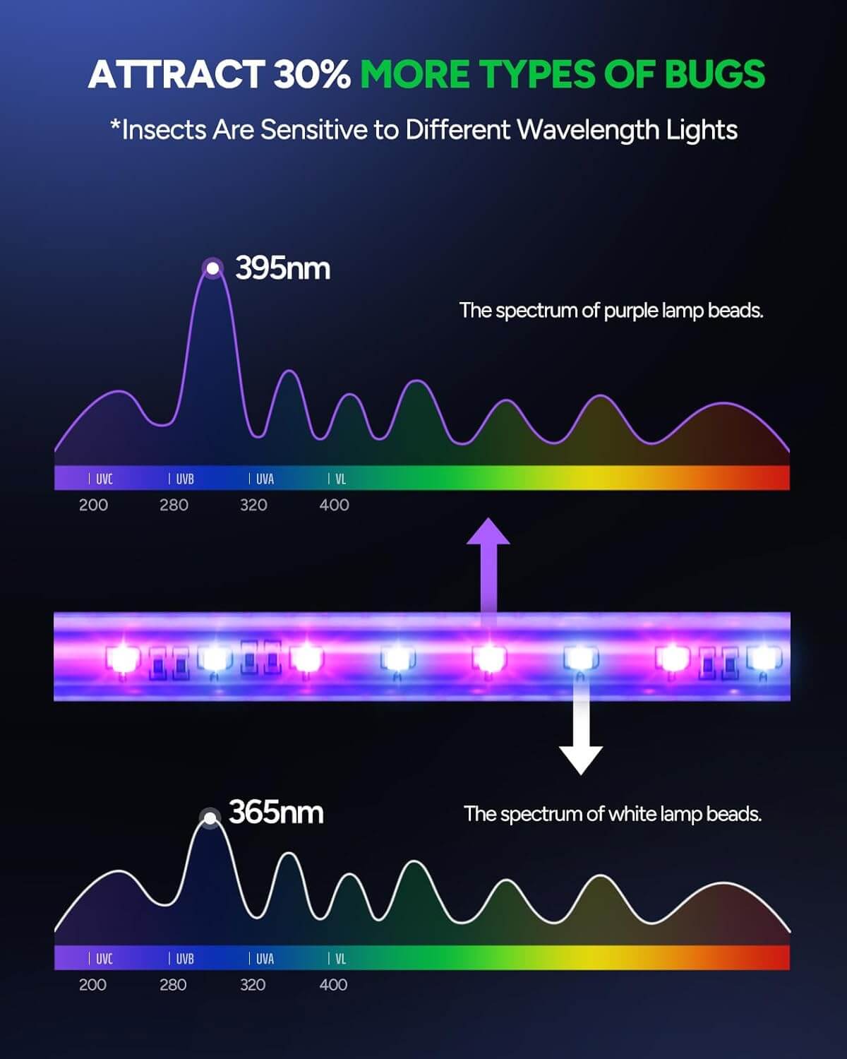 Široko delovanje: Razširjeno območje privlačnosti učinkovito privablja komarje, muhe, molje in druge žuželke.
