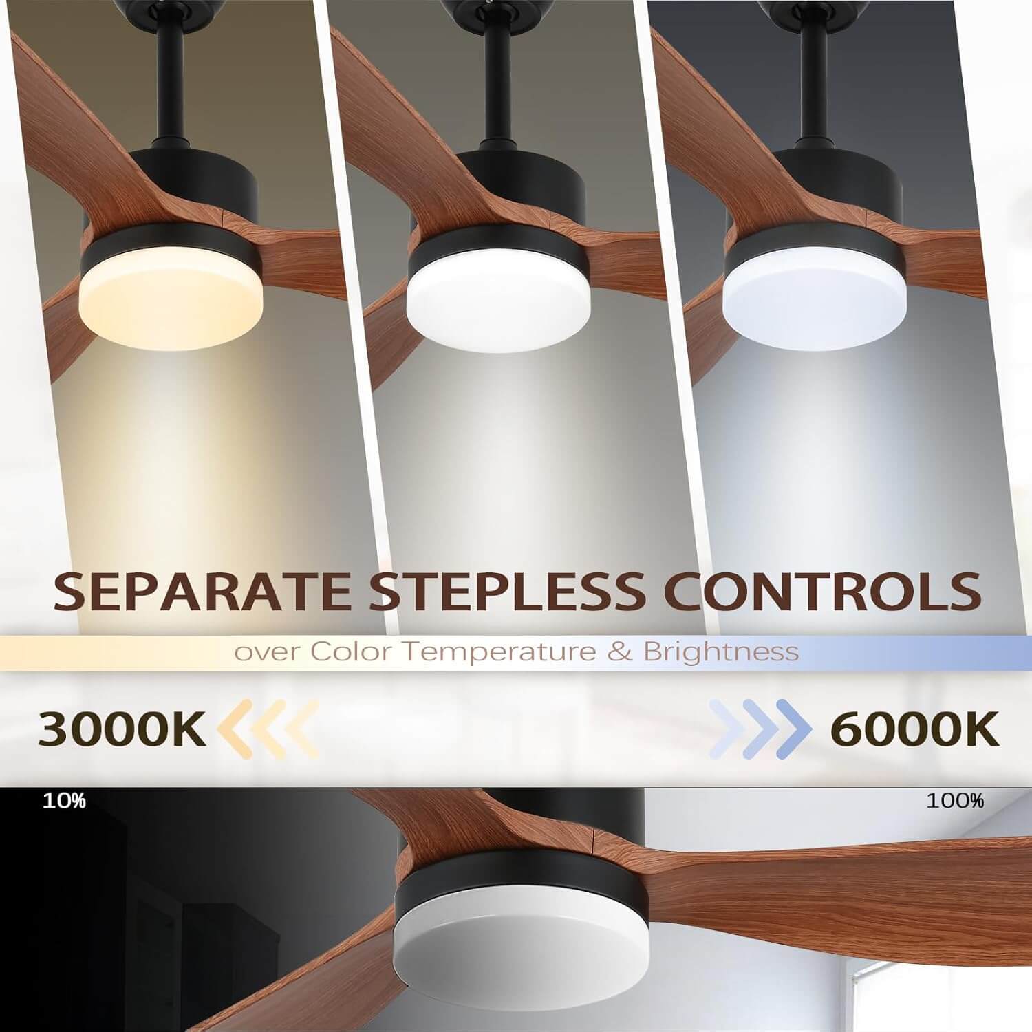 Pametni ventilator z lučjo: Vgrajena LED osvetlitev z možnostjo izbire treh barv svetlobe – topla, naravna in hladno bela – za prilagoditev vzdušja v prostoru.