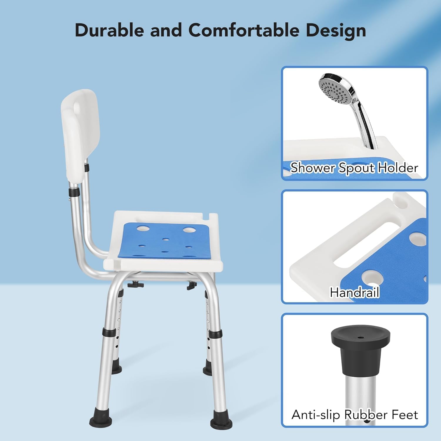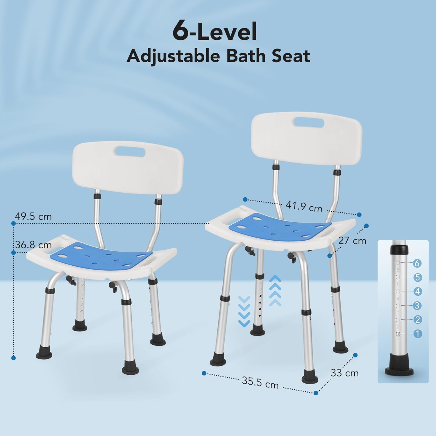 Tuš stol je zasnovan za maksimalno udobje, varnost in enostavno uporabo, še posebej za starejše osebe ali tiste z omejeno gibljivostjo. Izdelan je iz visokokakovostnega aluminijastega ogrodja, ki je trpežno, odporno proti koroziji in hkrati izjemno lahko, kar omogoča enostavno premikanje in stabilno uporabo v vsaki kopalnici.