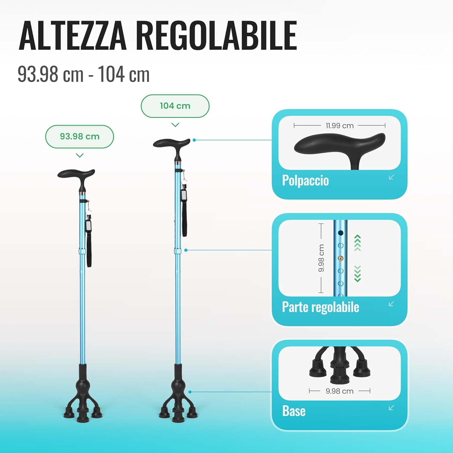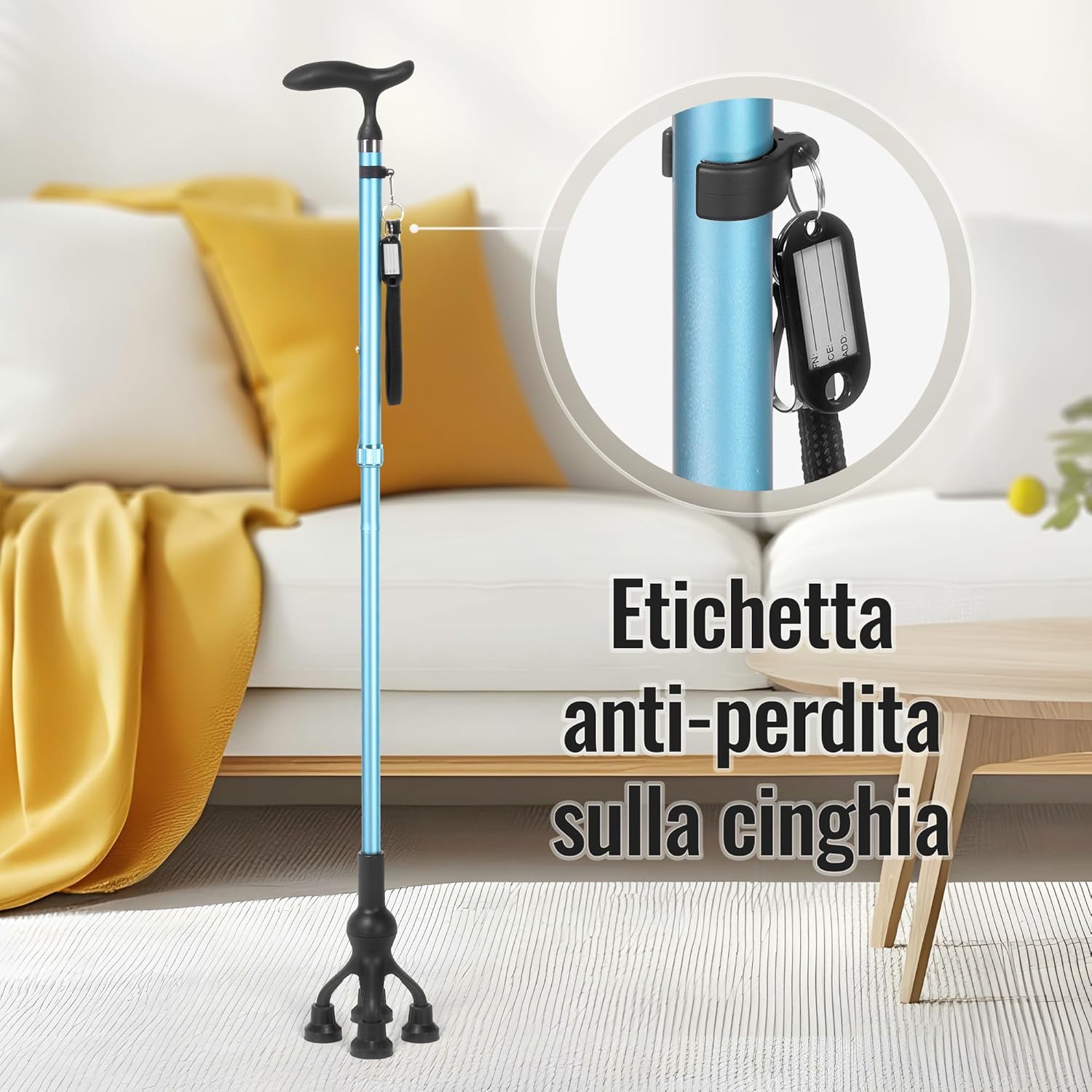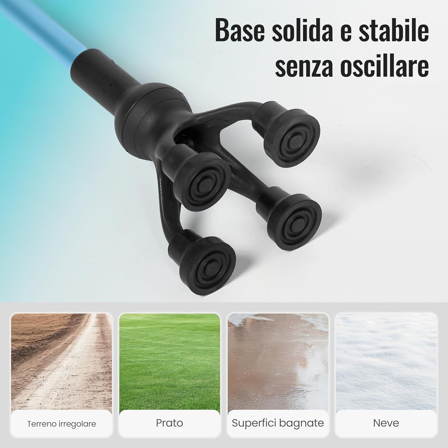 Lahka in stabilna sprehajalna palica iz aluminija nudi zanesljivo oporo pri hoji za starejše osebe in odrasle z zmanjšano gibljivostjo. Zložljiva konstrukcija, nastavljiva višina in štirizobi stabilizacijski podstavek zagotavljajo udobno, varno in praktično uporabo v vsakodnevnem življenju ali na poti.