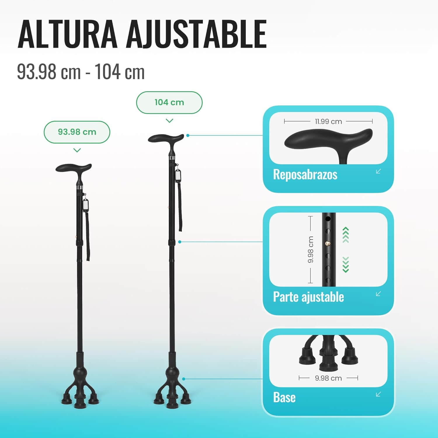 Zložljiva sprehajalna palica je zasnovana za varno in udobno podporo pri hoji v vsakdanjem življenju. Trpežna aluminijasta konstrukcija, nastavljiva višina ter stabilno štiritočkovno dno omogočajo zanesljivo uporabo tako v zaprtih prostorih kot na prostem. Primerna je za starejše, odrasle in osebe z zmanjšano mobilnostjo.