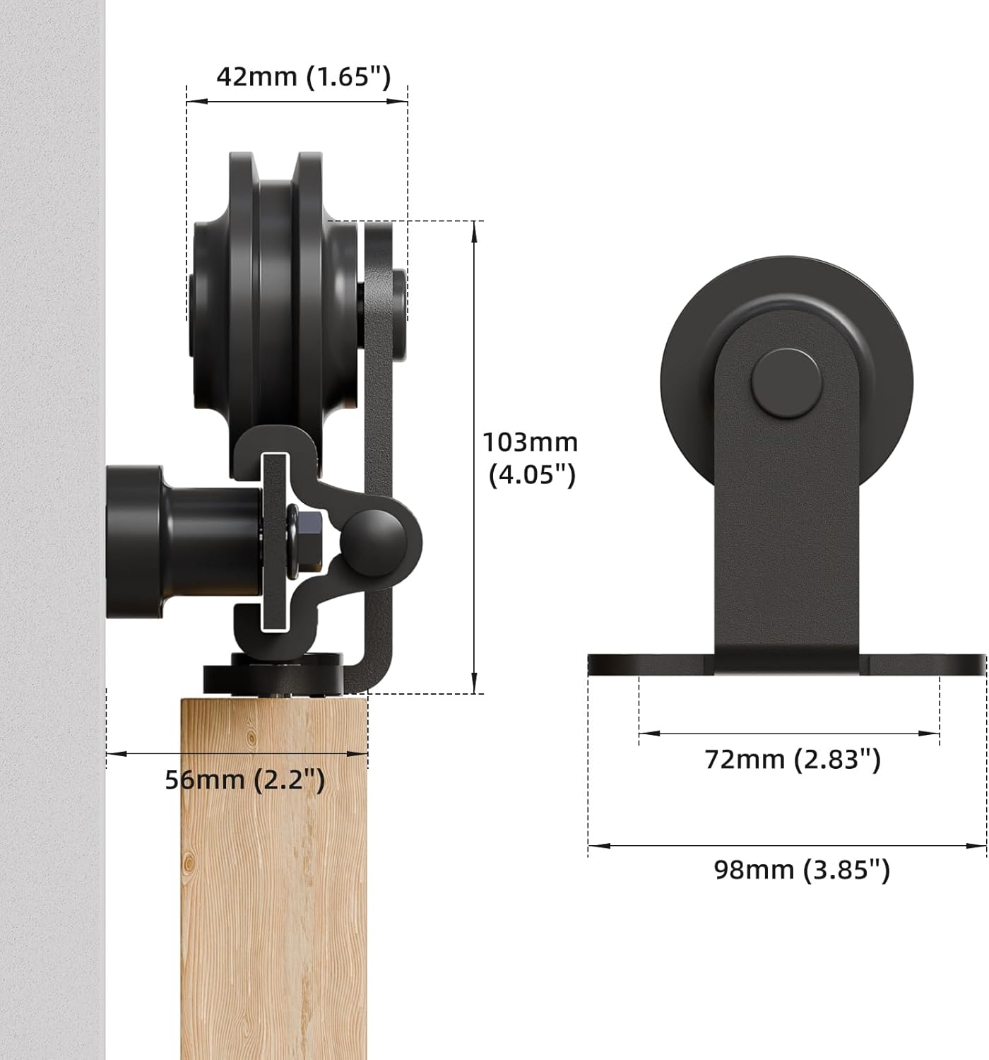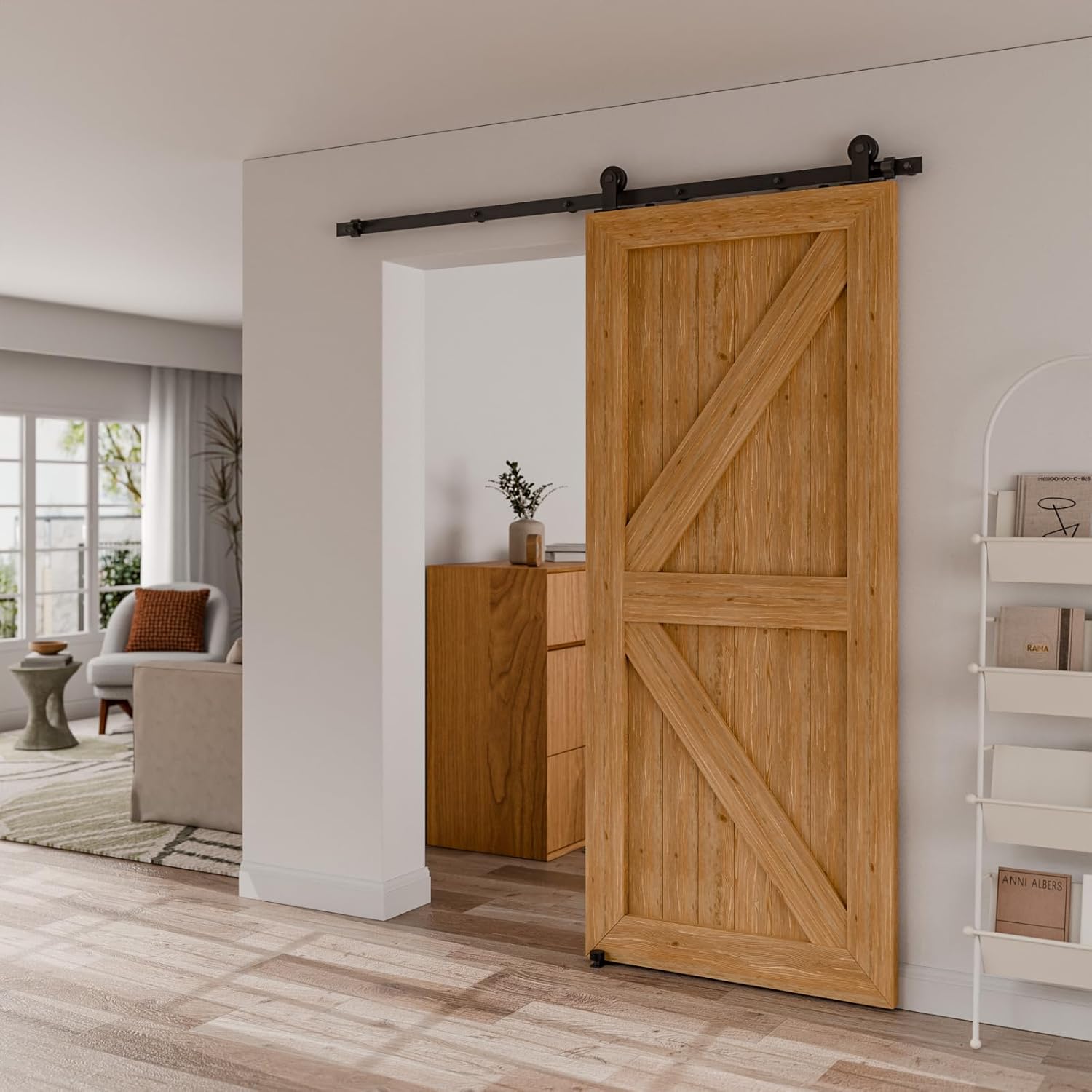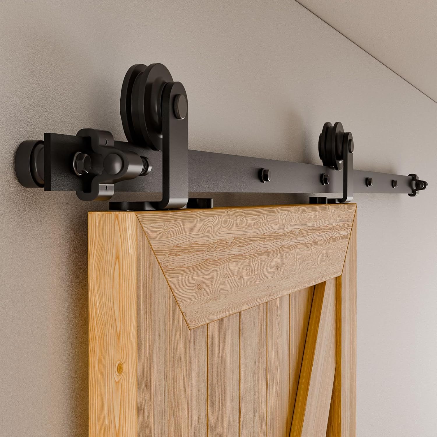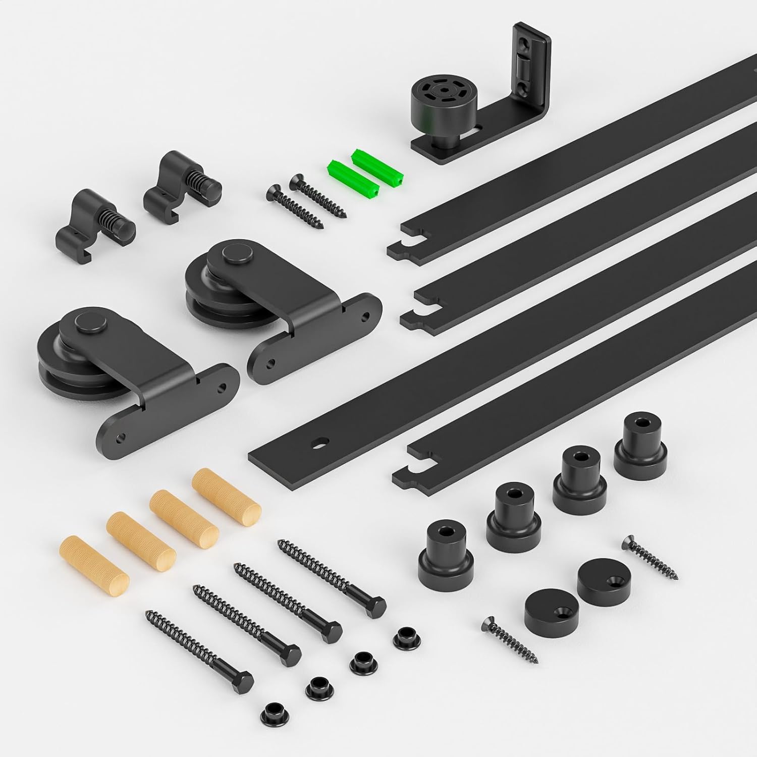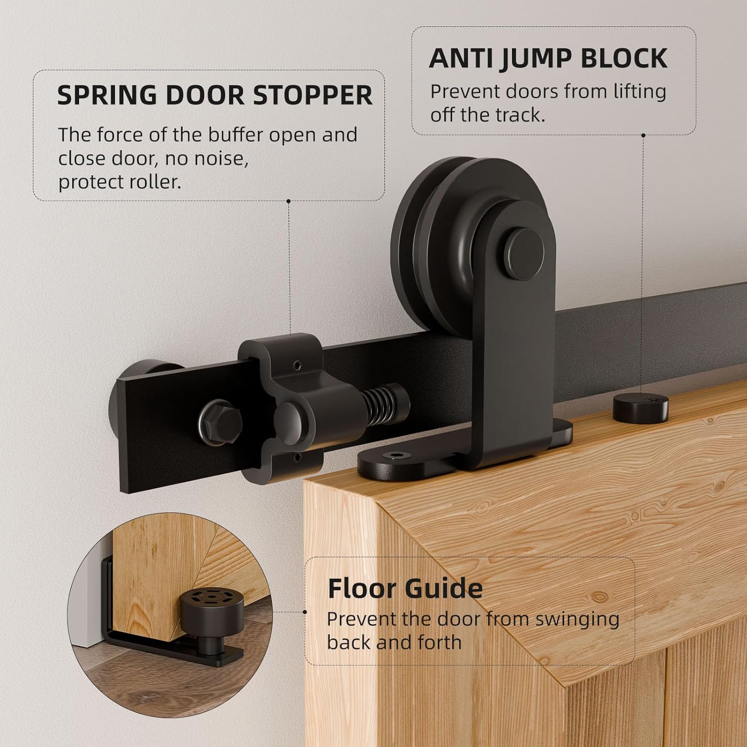 Kakovosten komplet za drsna vrata CCJH v retro slogu vključuje aluminijasto vodilo, koleščke in talni vodnik za enostavno in tiho drsenje lesenih vrat. Primeren je za notranjo uporabo v kuhinji, kopalnici, shrambi ali garderobi.