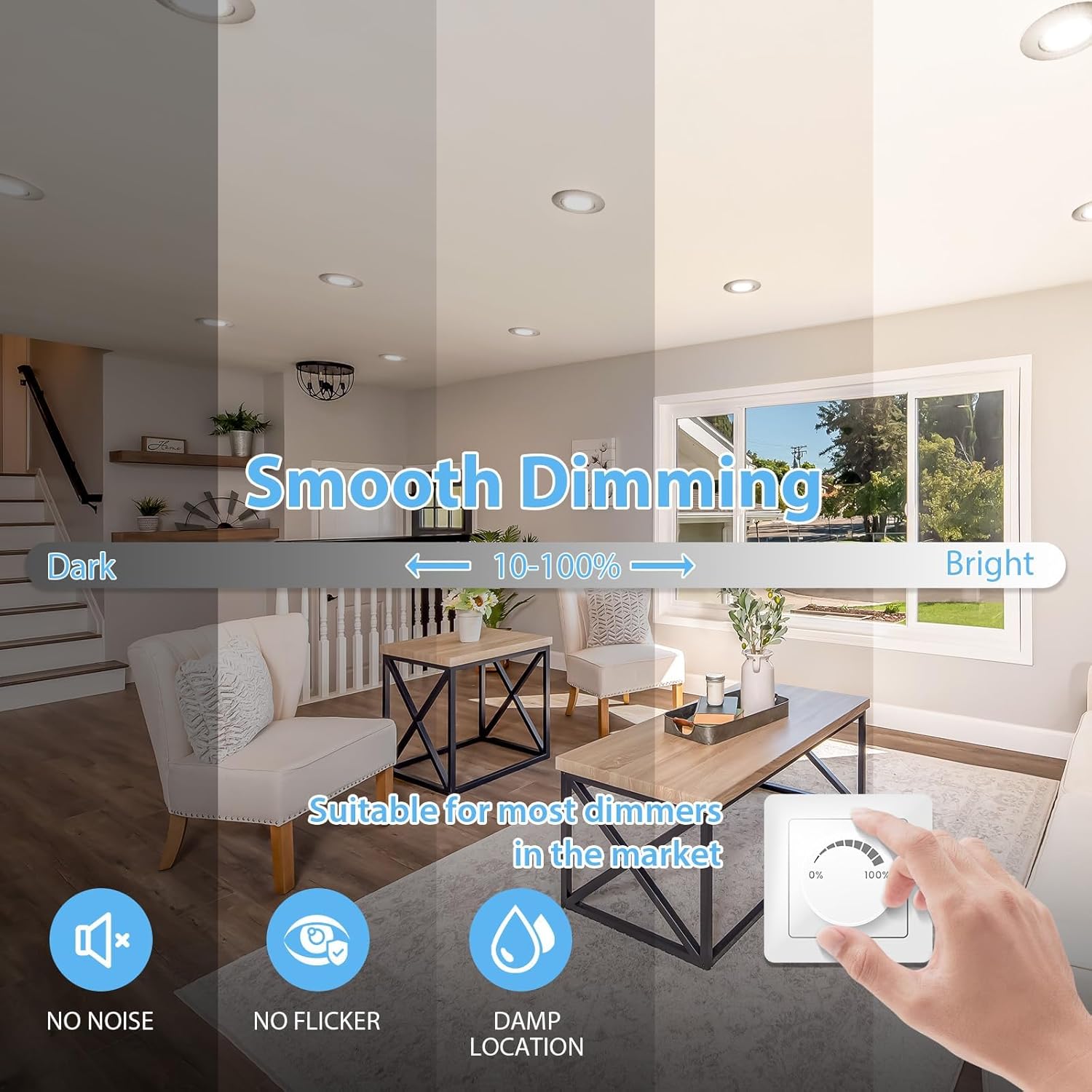 Zatemnilna funkcija: Razpon zatemnjevanja od 10 % do 100 % brez utripanja ali hrupa; združljivo z večino faznih (trailing edge) zatemnilnikov.