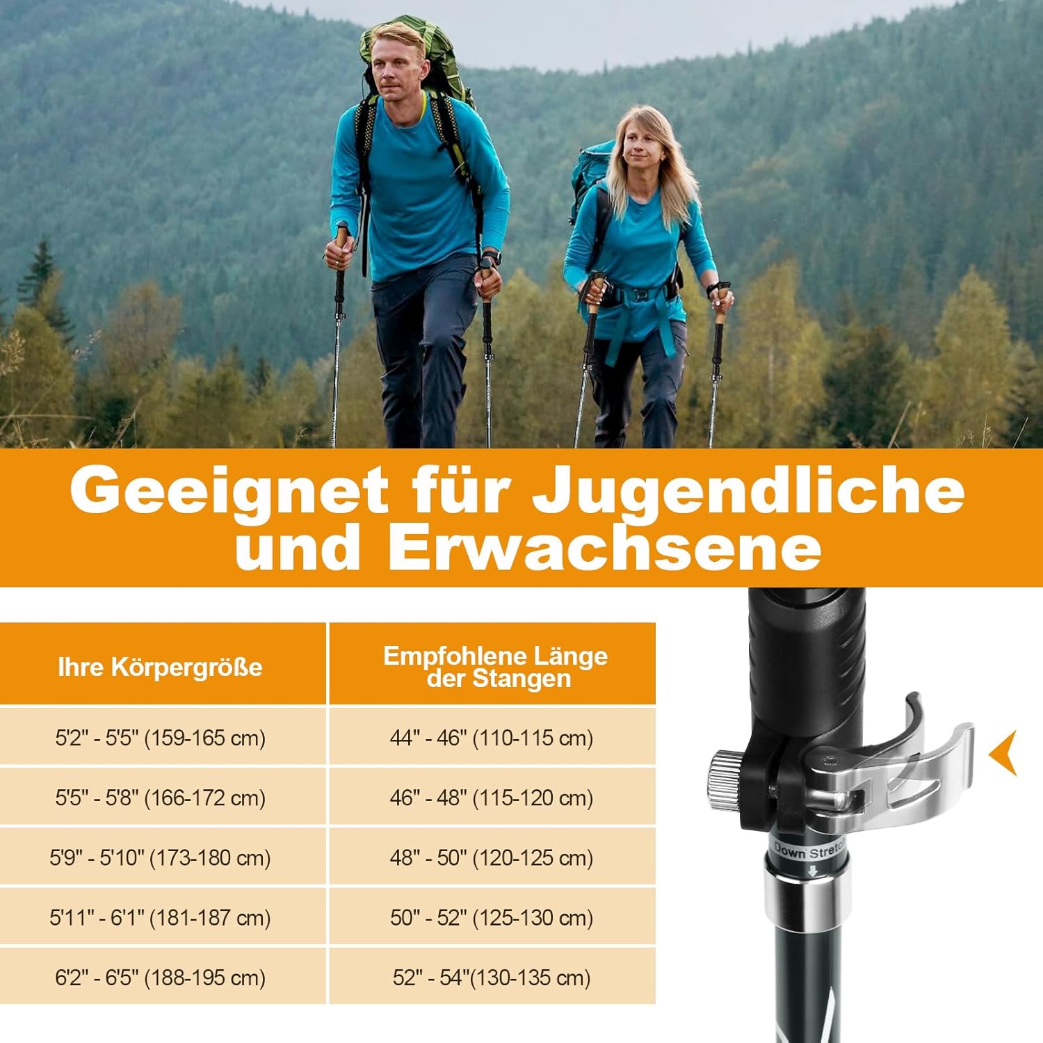 Trpežne in izjemno lahke pohodniške palice so zasnovane za udobno hojo po vseh terenih. Izdelane iz letalskega aluminija 7075 zagotavljajo visoko trdnost, odpornost proti koroziji in dolgo življenjsko dobo, hkrati pa jih je mogoče enostavno zložiti in prenašati. Primerne so za moške in ženske ter vse vrste pohodnikov – od začetnikov do izkušenih planincev.