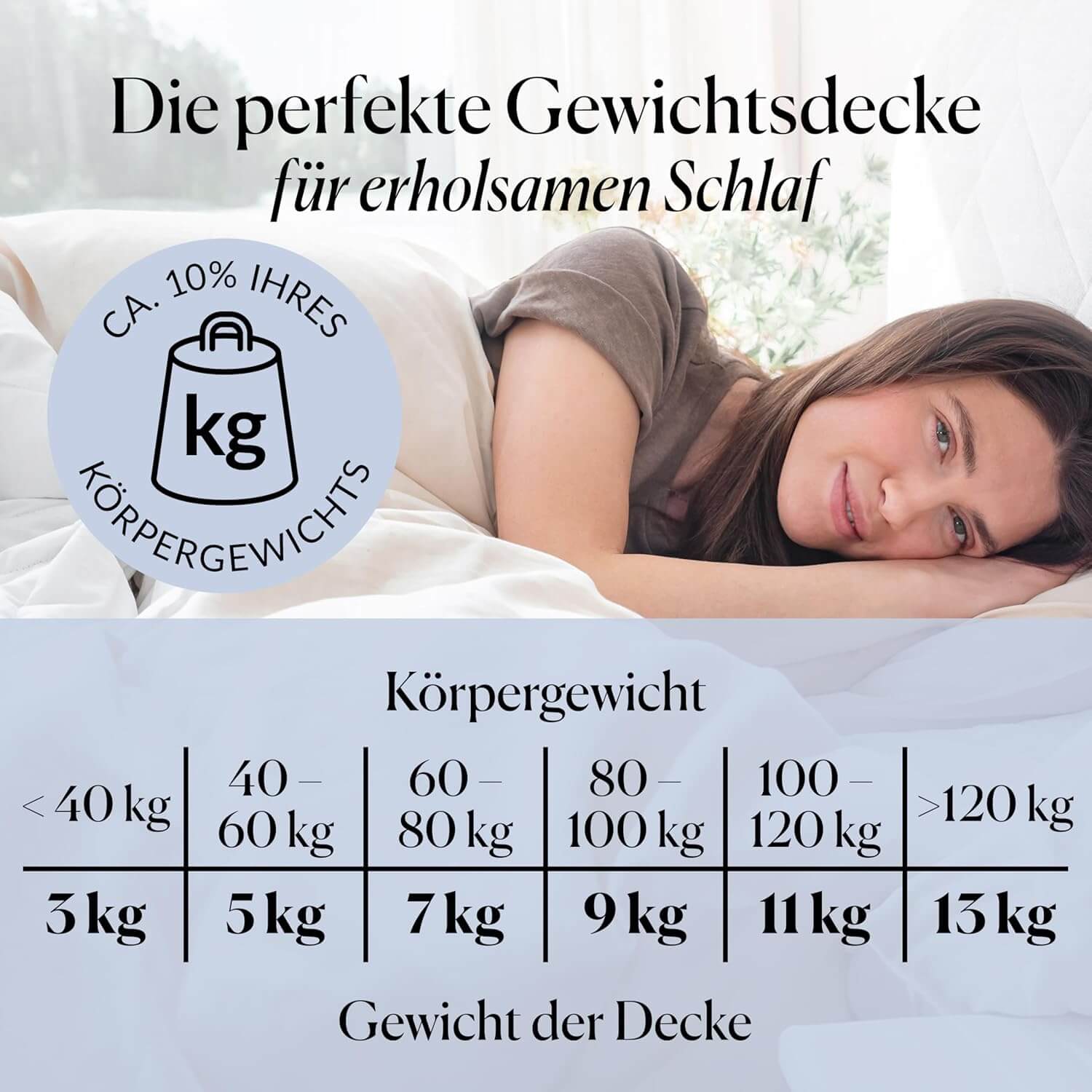 Prilagojena uporabniku – priporočena teža odeje je 10–15 % telesne teže. Model je na voljo v različnih dimenzijah in težah, primeren za odrasle vseh potreb.