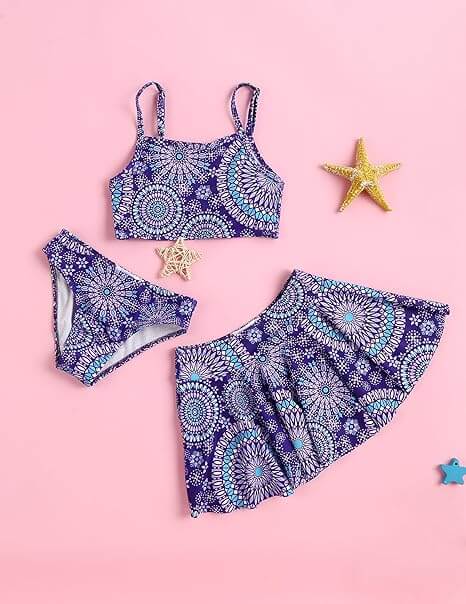 Arshiner tridelni bikini set je vsestranska izbira za deklice, ki želijo uživati v vodi in obenem ohraniti eleganten in igriv videz.