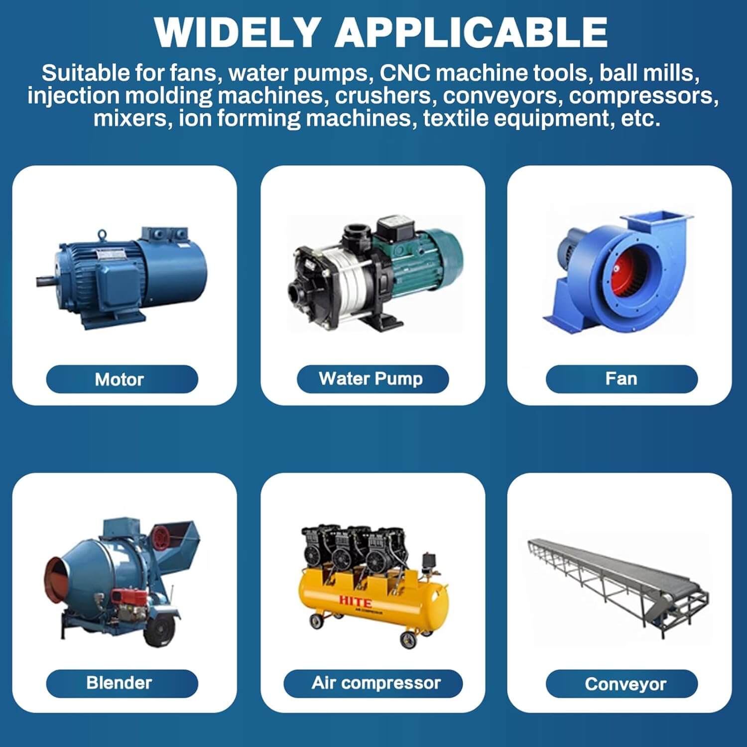 Široka uporaba: primeren za ventilatorje, črpalke, kompresorje, CNC stroje, transporterje, brizgalne stroje, tekstilne stroje in druge trifazne pogone, ki zahtevajo natančen in stabilen nadzor hitrosti.