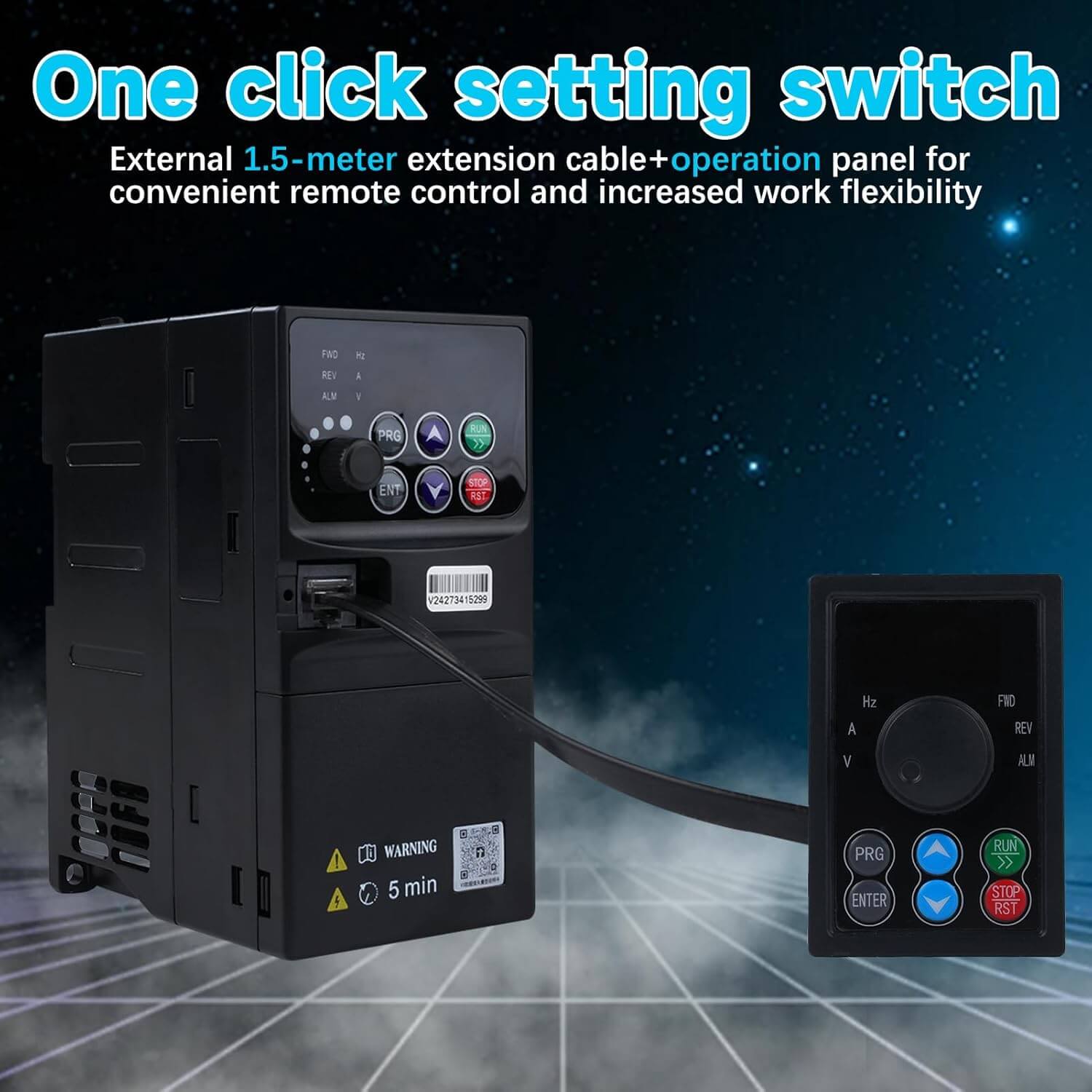 Frekvenčni pretvornik je zanesljiva rešitev za nadzor hitrosti trifaznih motorjev pri različnih industrijskih in delovnih aplikacijah. Opremljen je z natančnim vektorskim krmiljenjem, obsežnimi zaščitnimi funkcijami in zunanjim upravljalnim panelom, ki omogoča udobno upravljanje na daljavo.