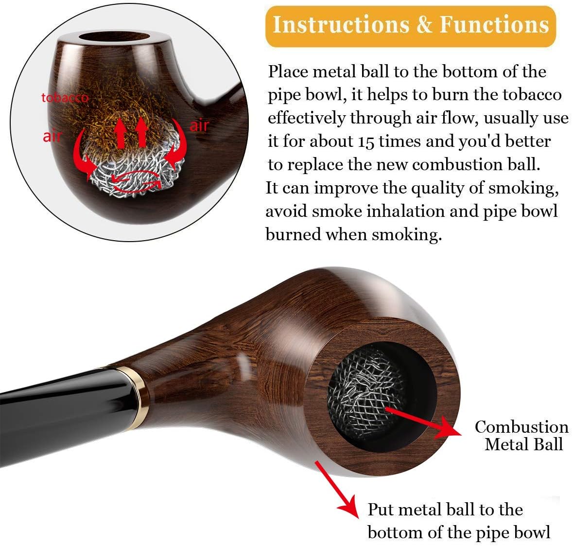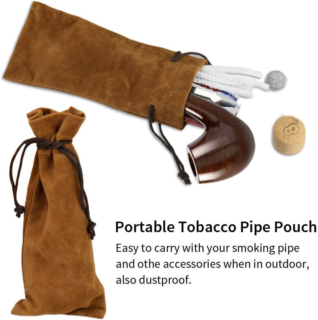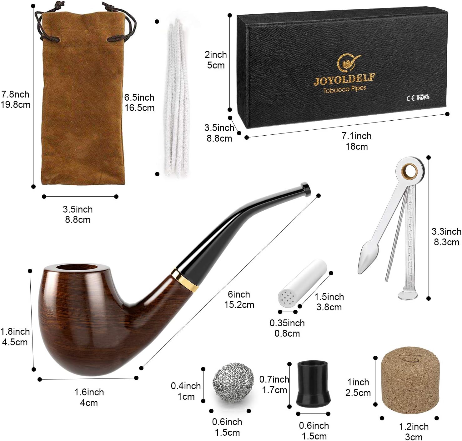Elegantna tobačna pipa je izdelana iz visokokakovostne ebenovine z ukrivljenim akrilnim ustnikom in zlatim obročem, ki daje izdelku prefinjen, klasičen videz. Komplet vključuje vse potrebne pripomočke za čiščenje ter leseno zložljivo stojalo, lično zapakirano v darilni škatli.