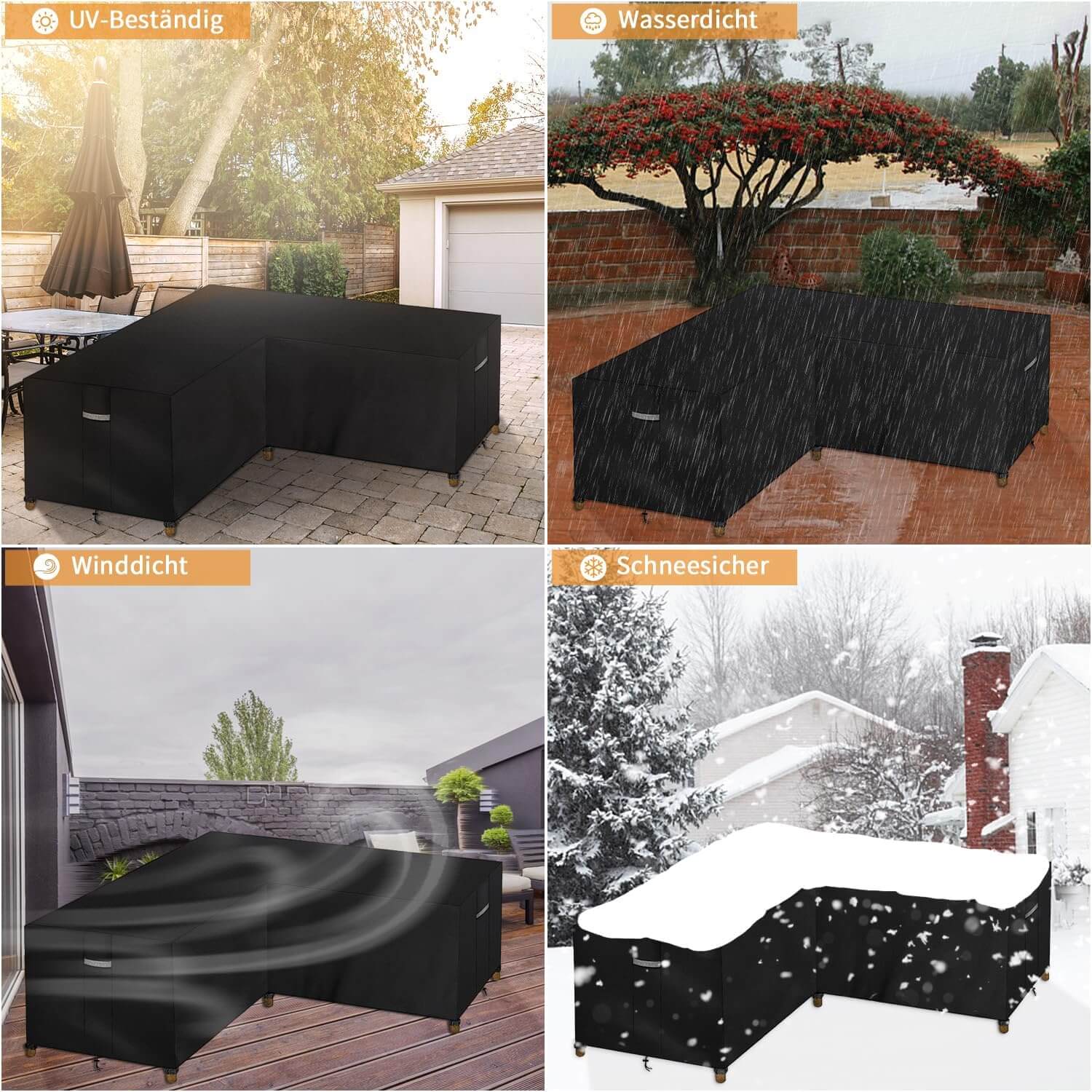 Univerzalna velikost: primerna za večino L-oblikovanih vrtnih garnitur, kotne sedežne garniture in lounge pohištvo. Pred nakupom izmerite dimenzije za popolno prileganje.