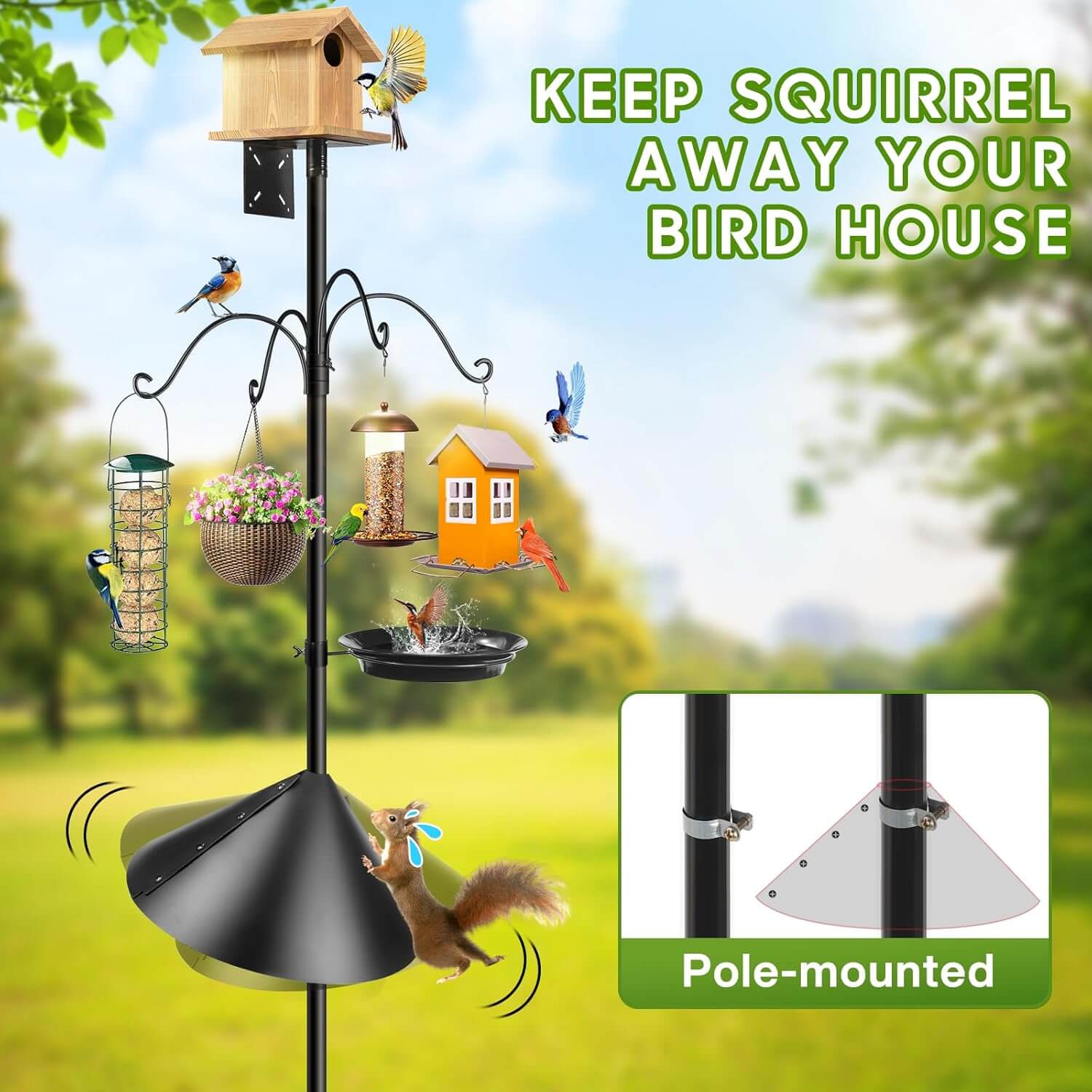 Zaščita pred vevericami: 48 cm širok zaščitni obroč s gladko površino učinkovito preprečuje, da bi se veverice povzpele do hrane.