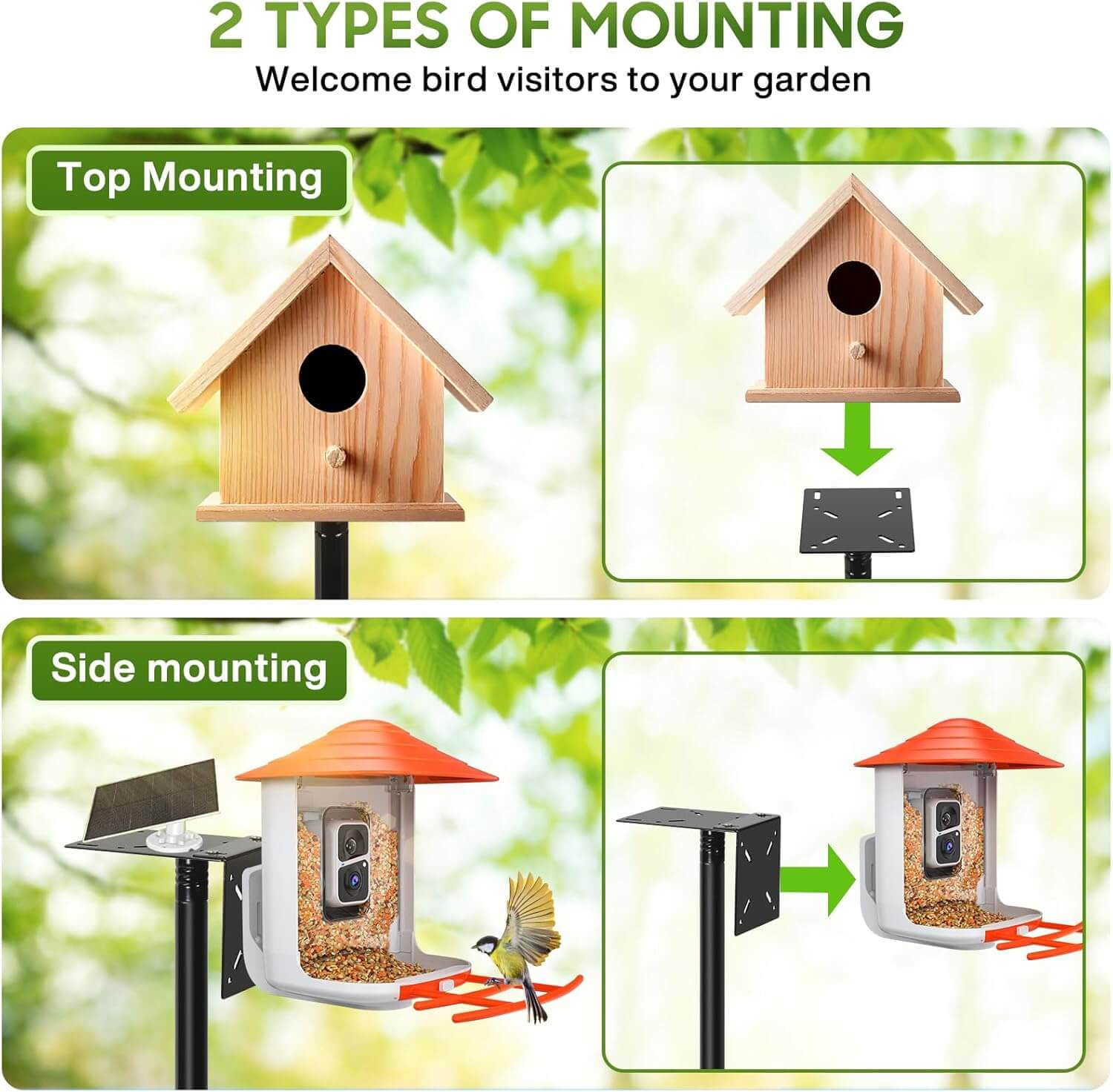Dodatna oprema: priložena ptičja kopel, ki pticam omogoča pitje in kopanje; zgornji plošči omogočata montažo klasičnih ali pametnih krmilnic.