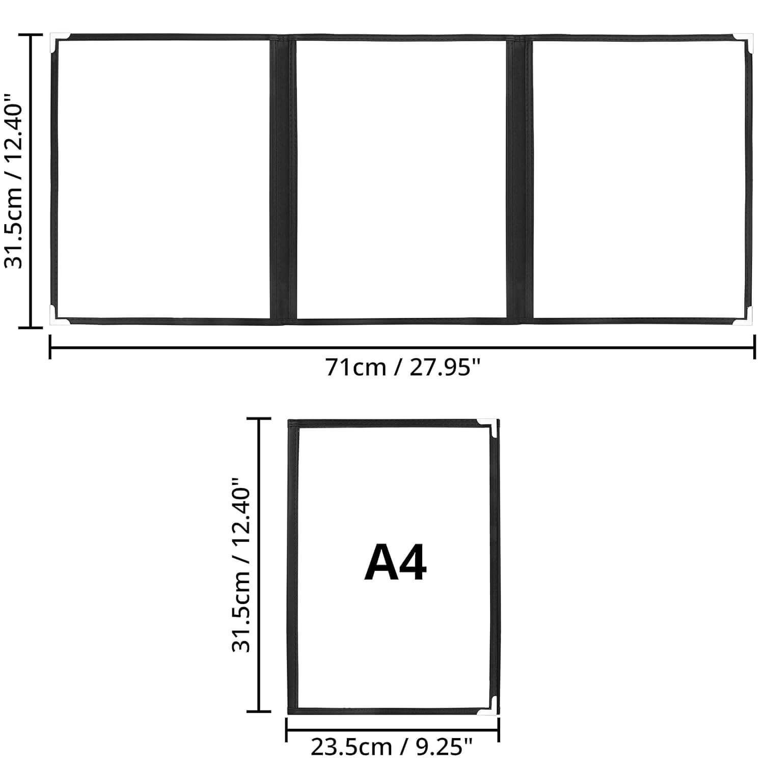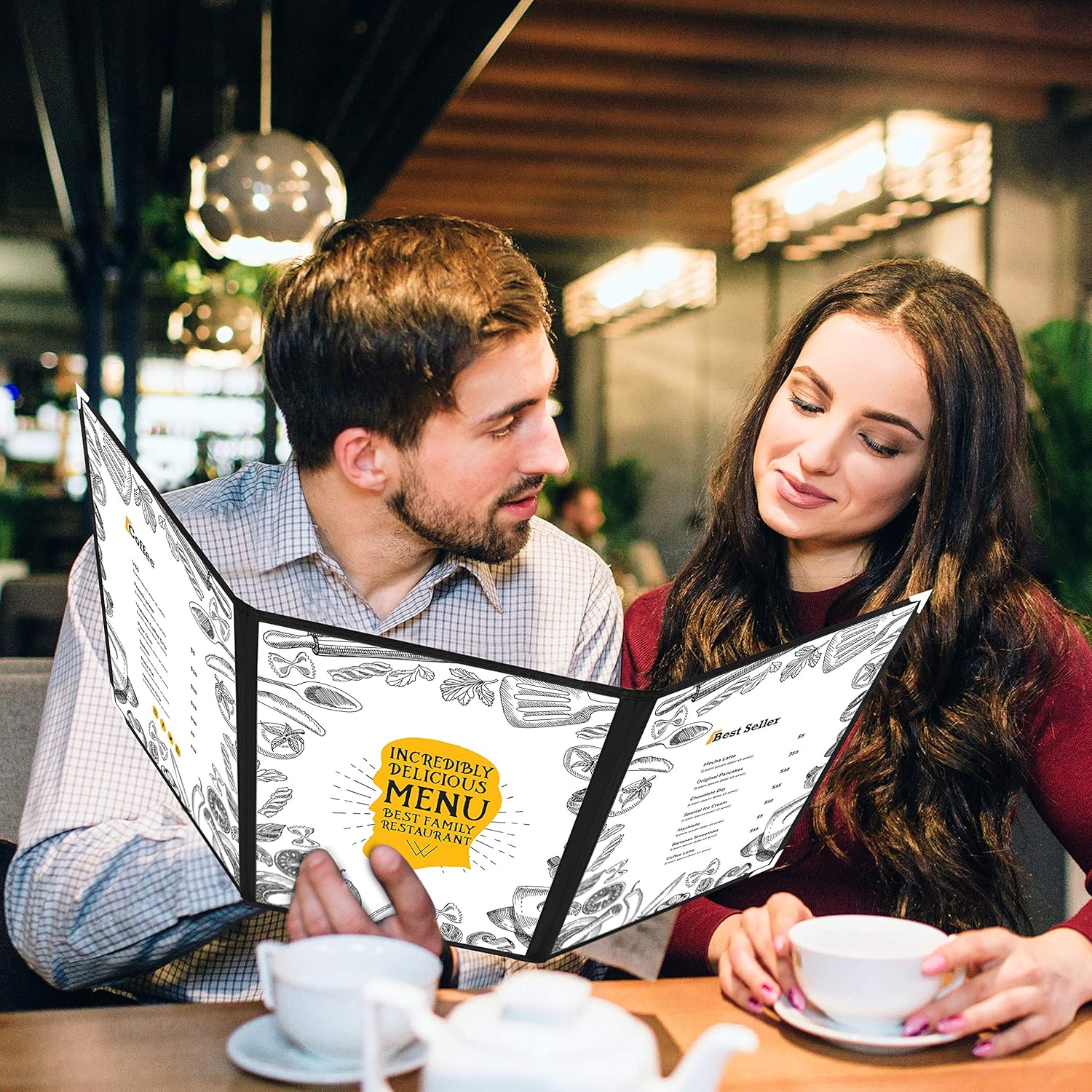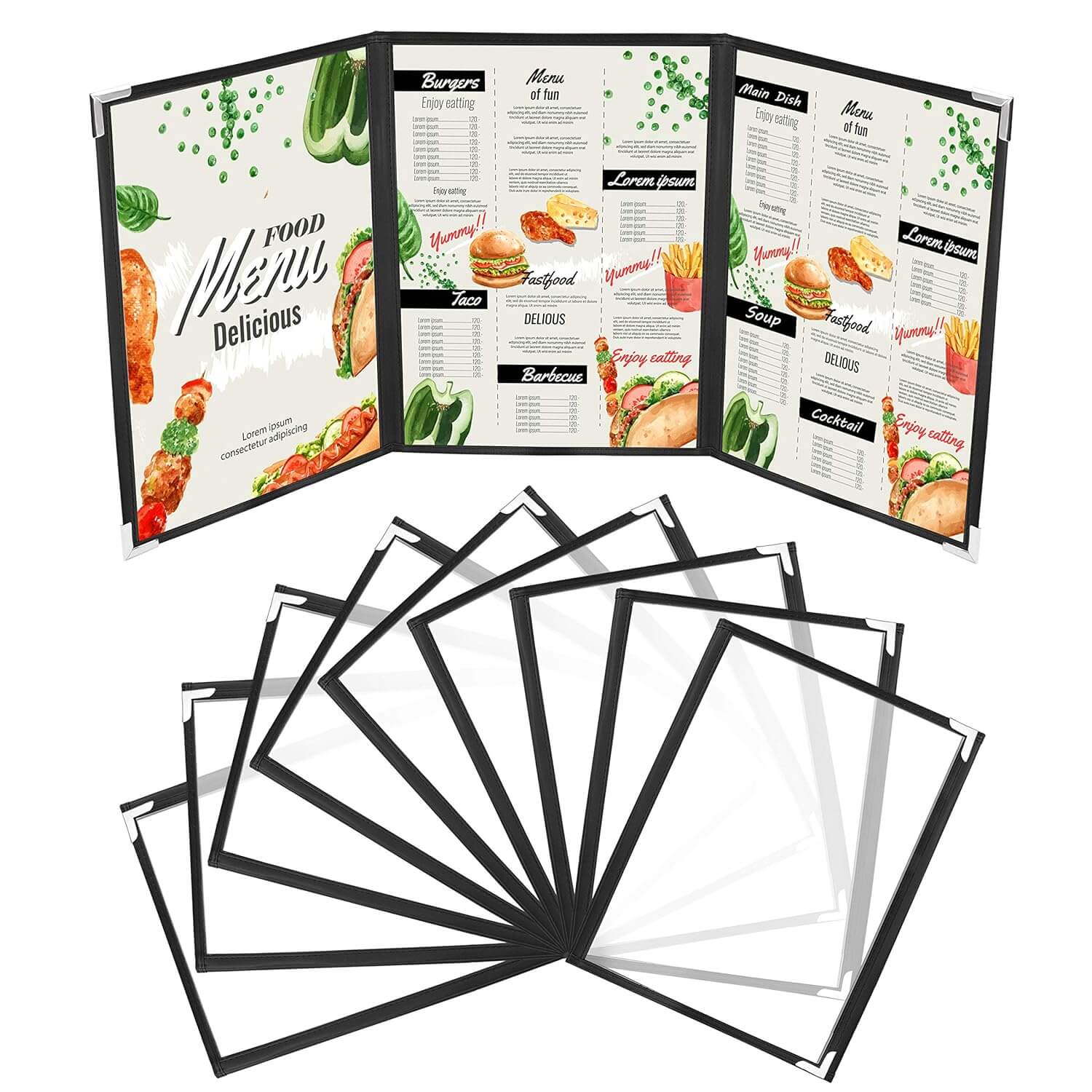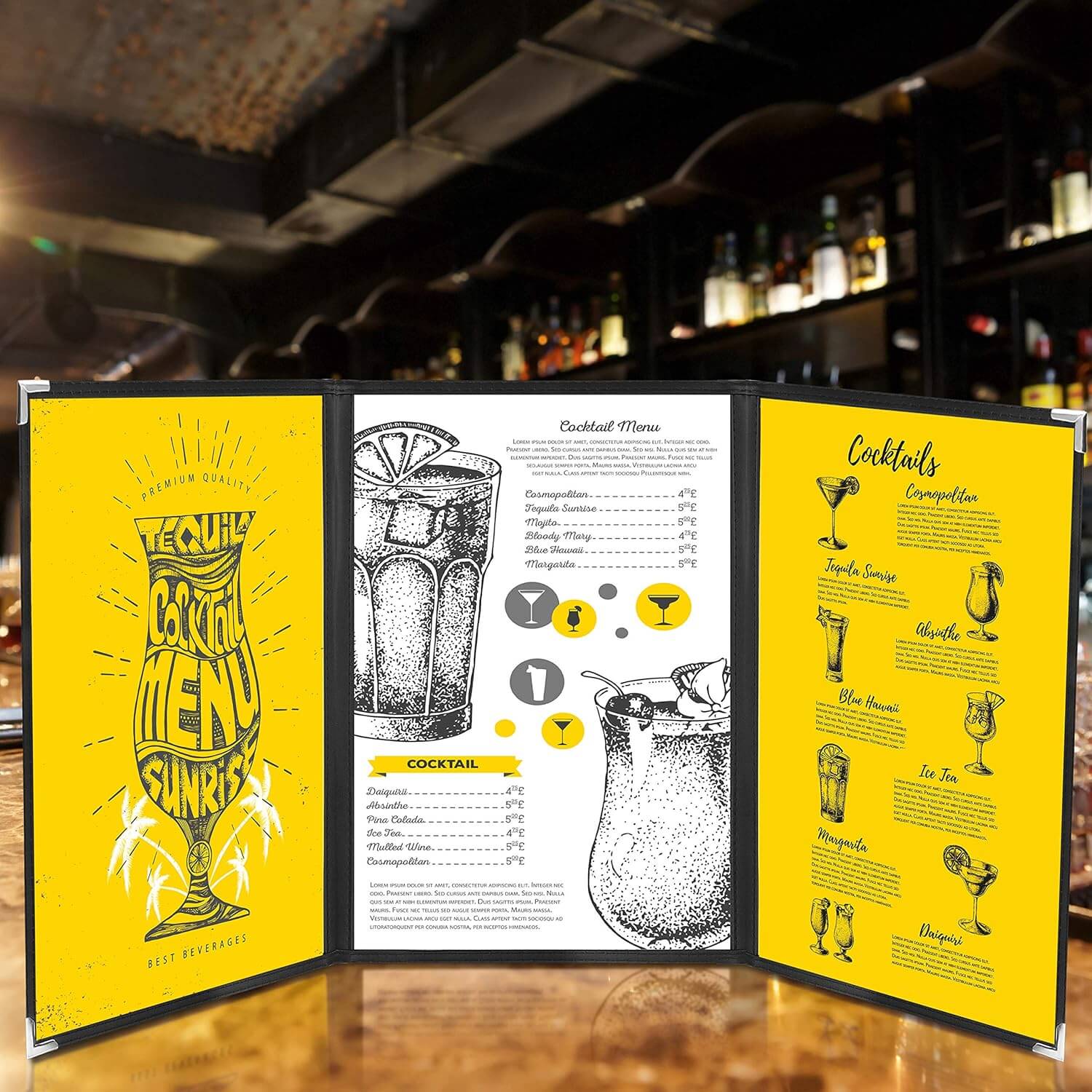 Trojno zložljive mape za menije združujejo praktičnost, trpežnost in eleganten dizajn. Te trojne držale za menije z dvojno stransko vidljivostjo so idealna izbira za restavracije, bare, kavarne in druge gostinske objekte, saj zagotavljajo jasno in privlačno predstavitev vašega menija.
