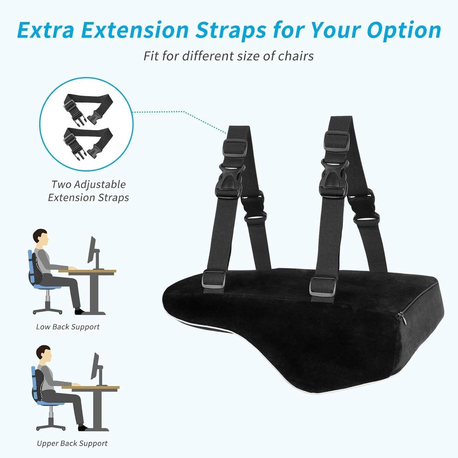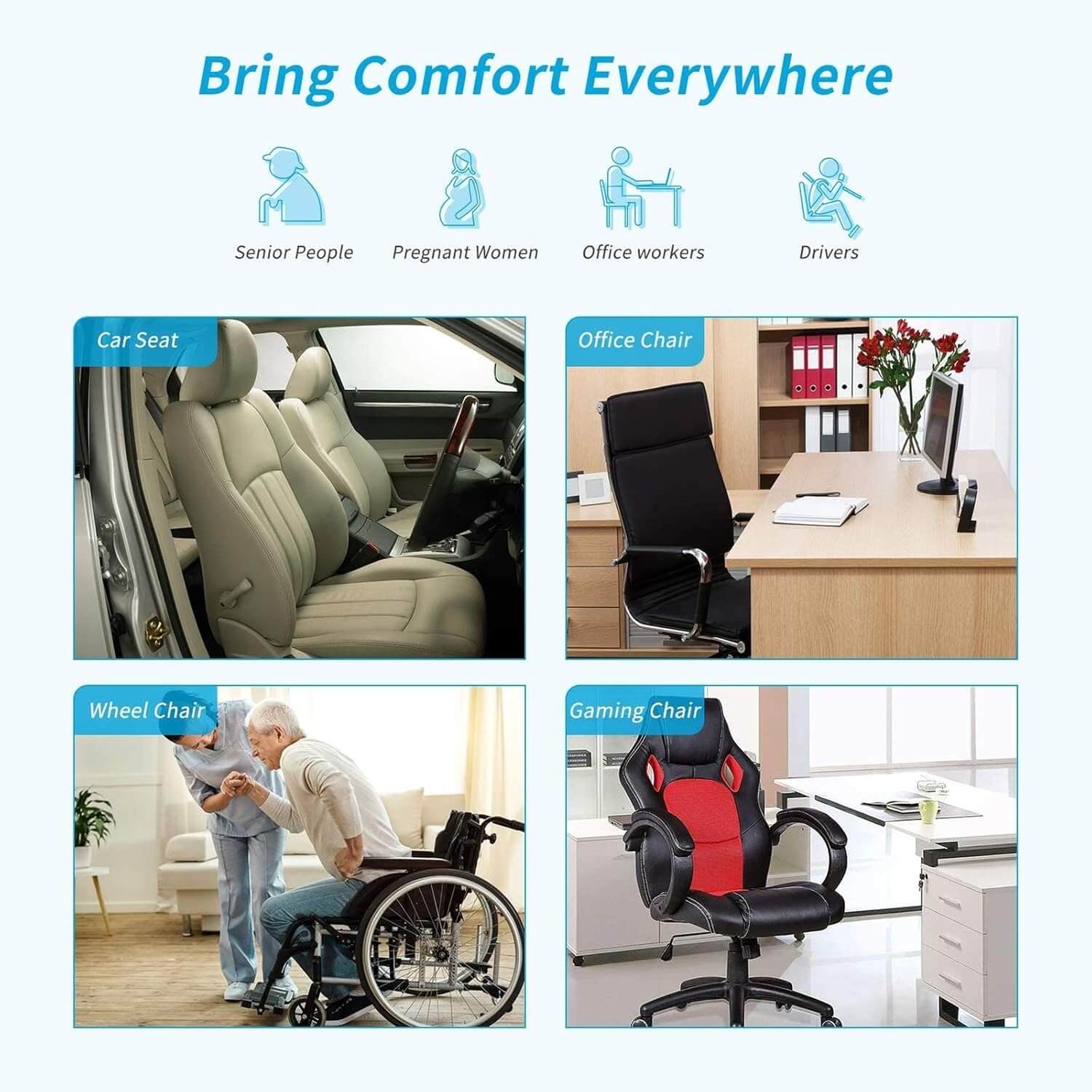Napredna blazina za hrbet z gel plastjo in spominsko peno, zasnovana za optimalno lumbalno podporo in udobje med dolgotrajnim sedenjem. Idealen pripomoček za pisarniške stole, avtomobile, domače sedeže in še več.