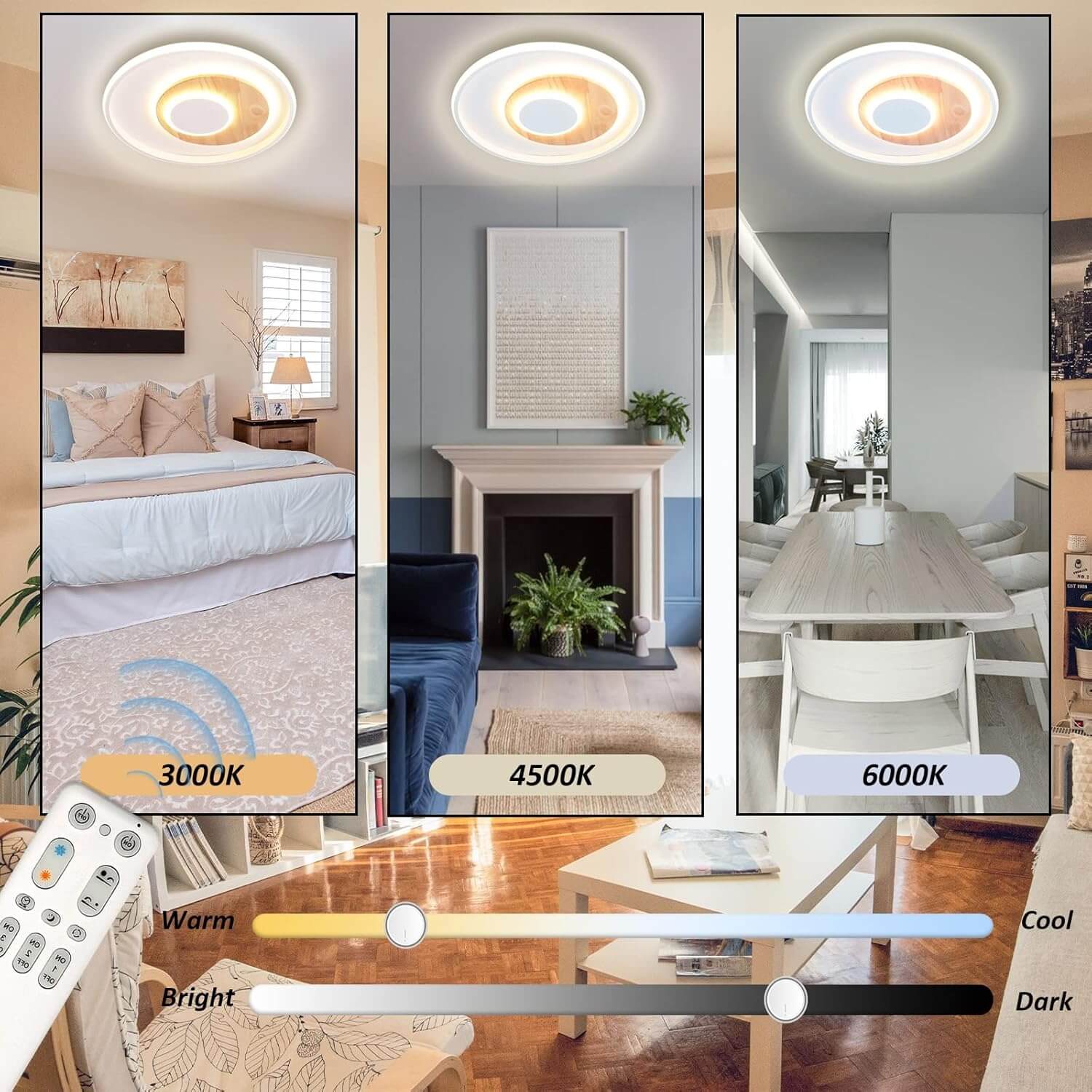 Moderna stropna svetilka združuje naraven lesen videz, izjemno tanko zasnovo in popolno prilagodljivost svetlobe. Primerna je za spalnice, otroške sobe, dnevne prostore, kuhinje in vse moderne interierje, kjer želiš prijetno, nastavljivo in varčno osvetlitev.