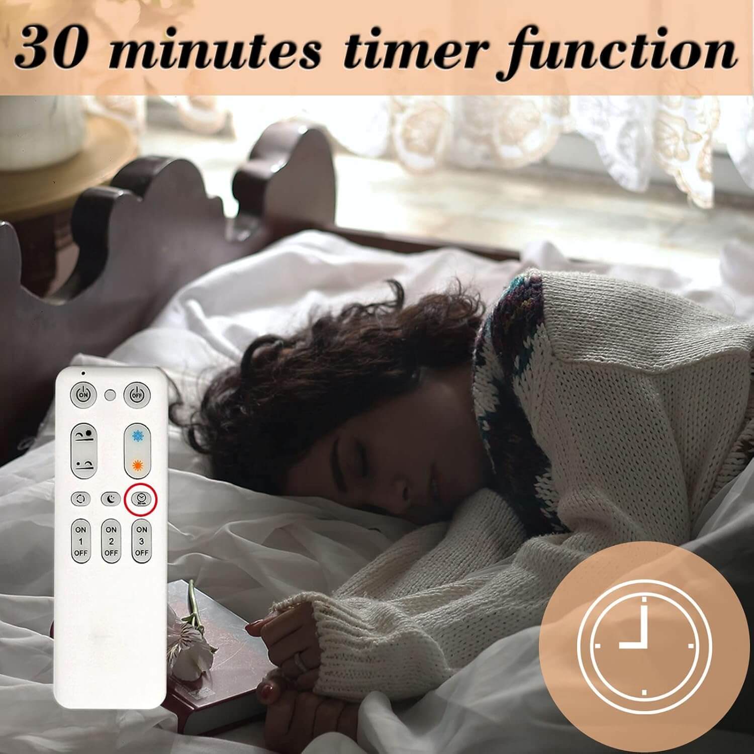 Možnost avtomatskega izklopa po 30 minutah ter nežna nočna svetloba, idealna za spalnico ali otroško sobo.