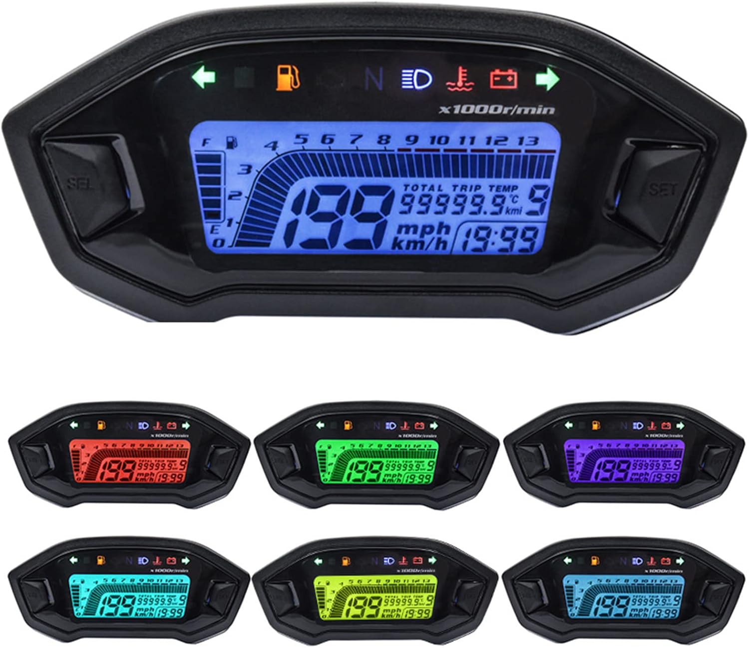 Univerzalni digitalni merilnik hitrosti je zasnovan za 2- do 4-valjne motorje in ponuja natančno merjenje hitrosti, števila vrtljajev ter prevožene razdalje. Opremljen je z LCD-zaslonom in LED osvetlitvijo v 7 barvah, ki zagotavlja odlično berljivost podnevi in ponoči.