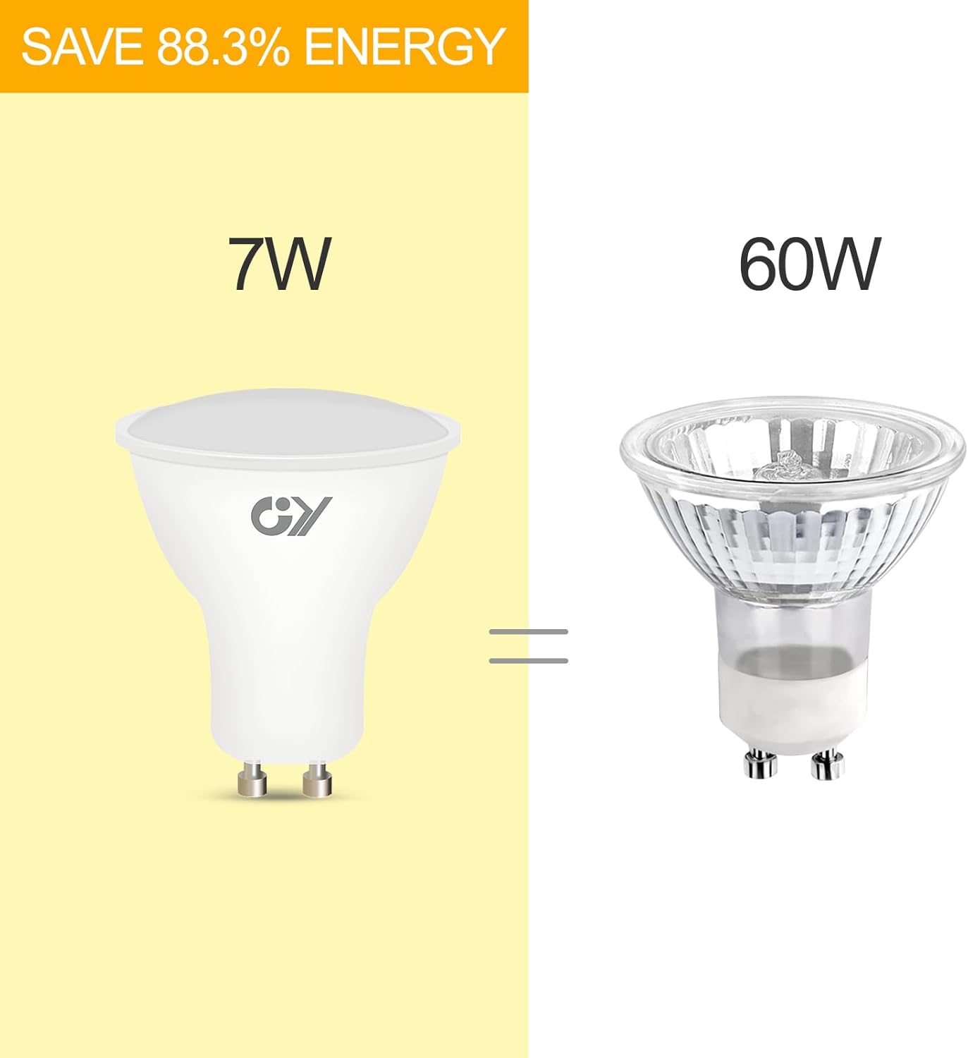 Zatemnjiva LED žarnica GY GU10 z močjo 7 W nadomešča 70 W halogensko žarnico, omogoča nastavitev svetlosti od 5 % do 100 %. Svetloba nevtralno bele barve (4000 K) z močjo 600 lumenov in širokim kotom snopa 120° zagotavlja prijetno in mehko osvetlitev brez utripanja. Žarnica ima visok indeks barvne upodobitve (CRI > 80) ter varuje oči, saj ne vsebuje škodljivih snovi in ne seva UV žarkov.