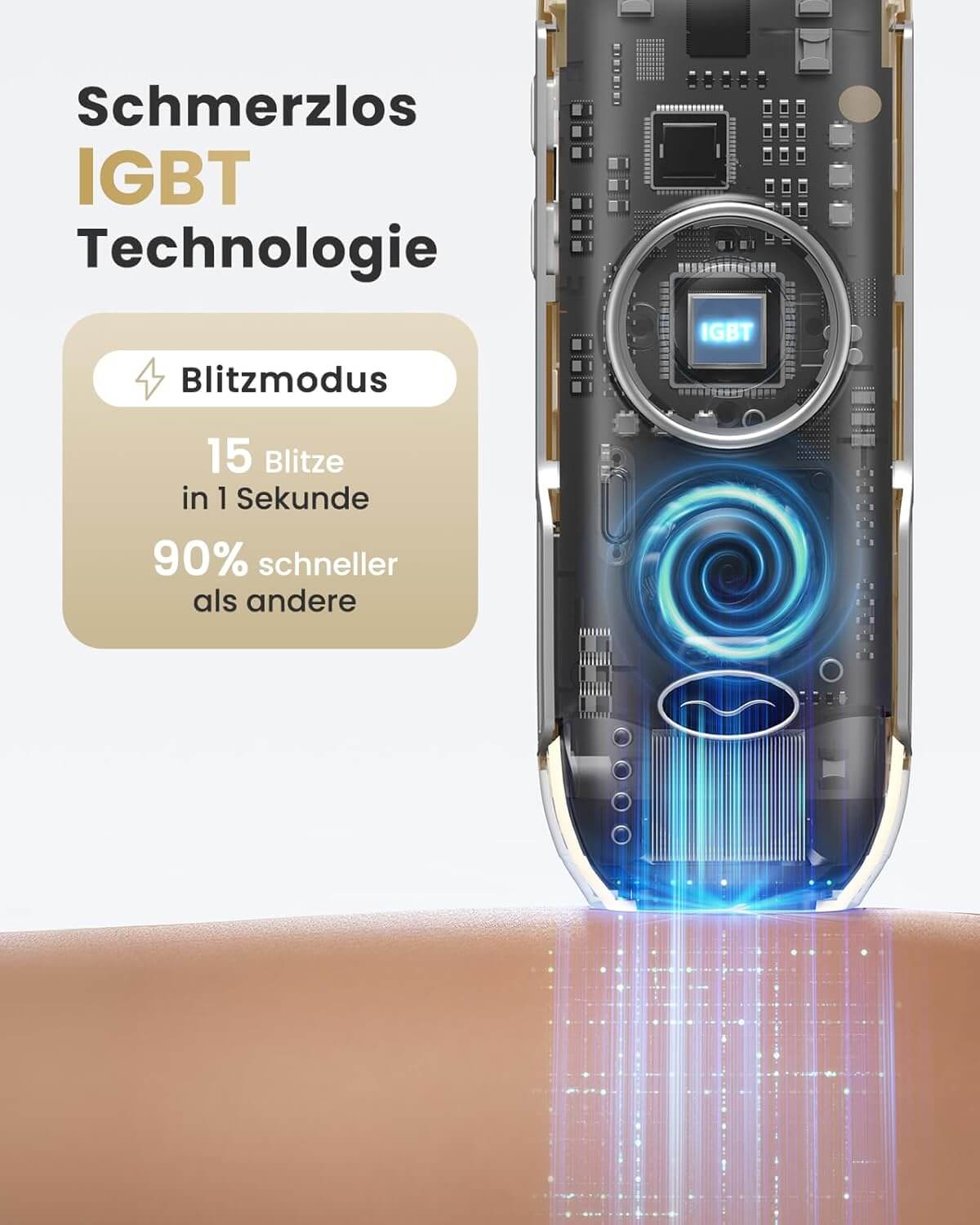 Skoraj neboleča uporaba: IGBT 4.0 omogoča enakomeren izstrel svetlobe, brez neprijetnega žganja.