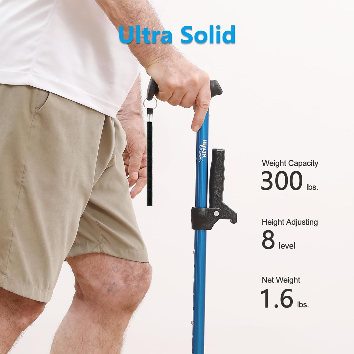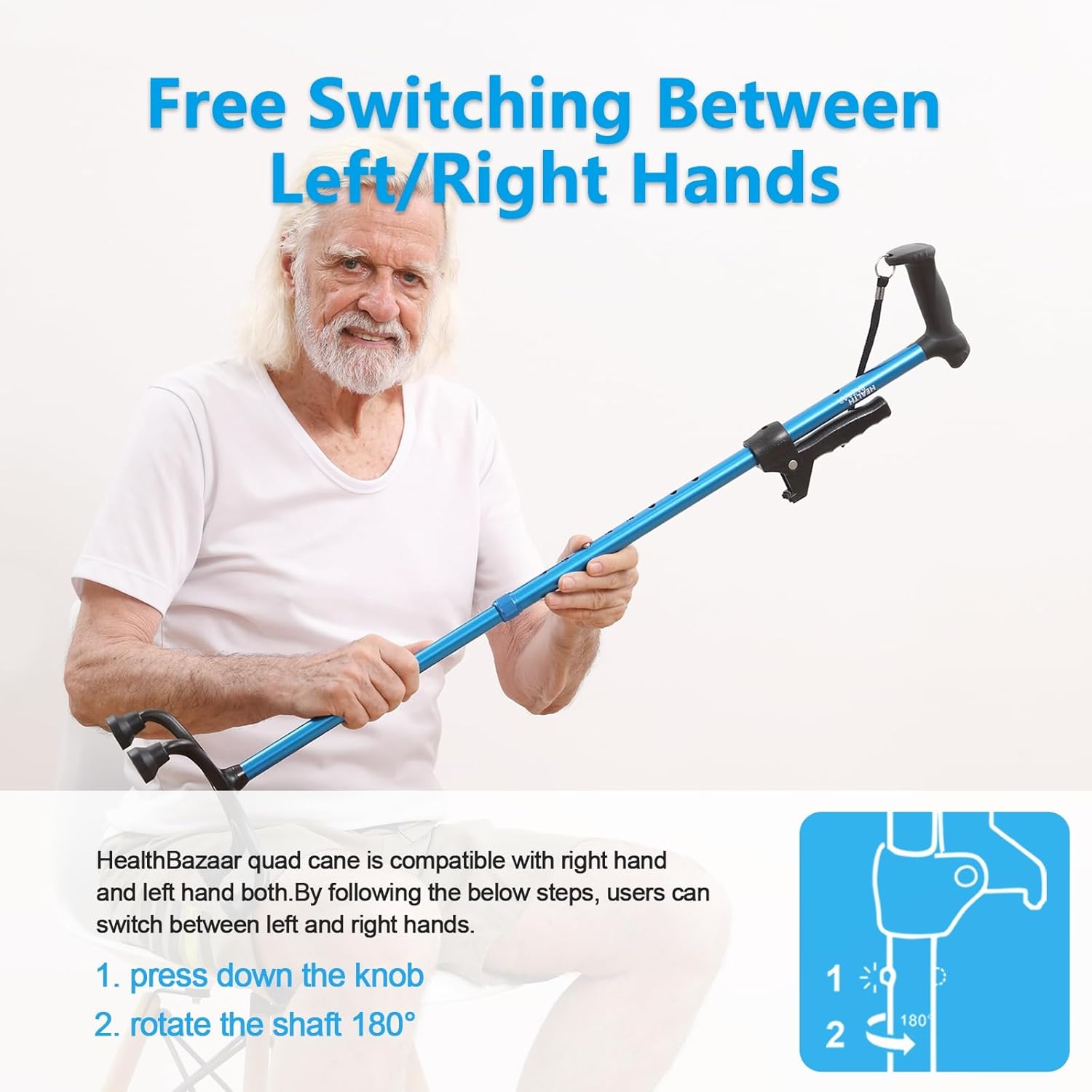 Zanesljiva in lahko prenosna sprehajalna palica s štirinožno osnovo zagotavlja odlično stabilnost, varnost in udobje pri hoji. Izdelana je iz lahkega aluminija, opremljena z ergonomsko oblikovanim ročajem in nastavljivo višino, primerna za uporabo z desno ali levo roko.