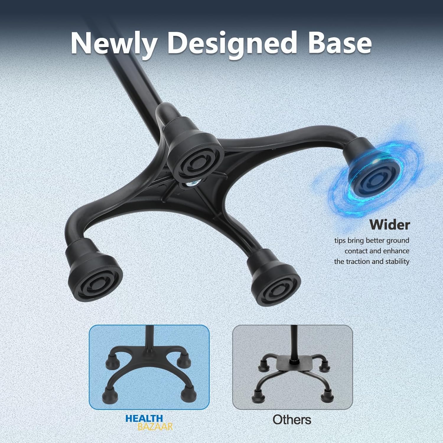 Vrtljiva osnova: patentirana 4-točkovna zasnova omogoča varno oporo tudi na neravnih površinah in absorbira udarce pri hoji.