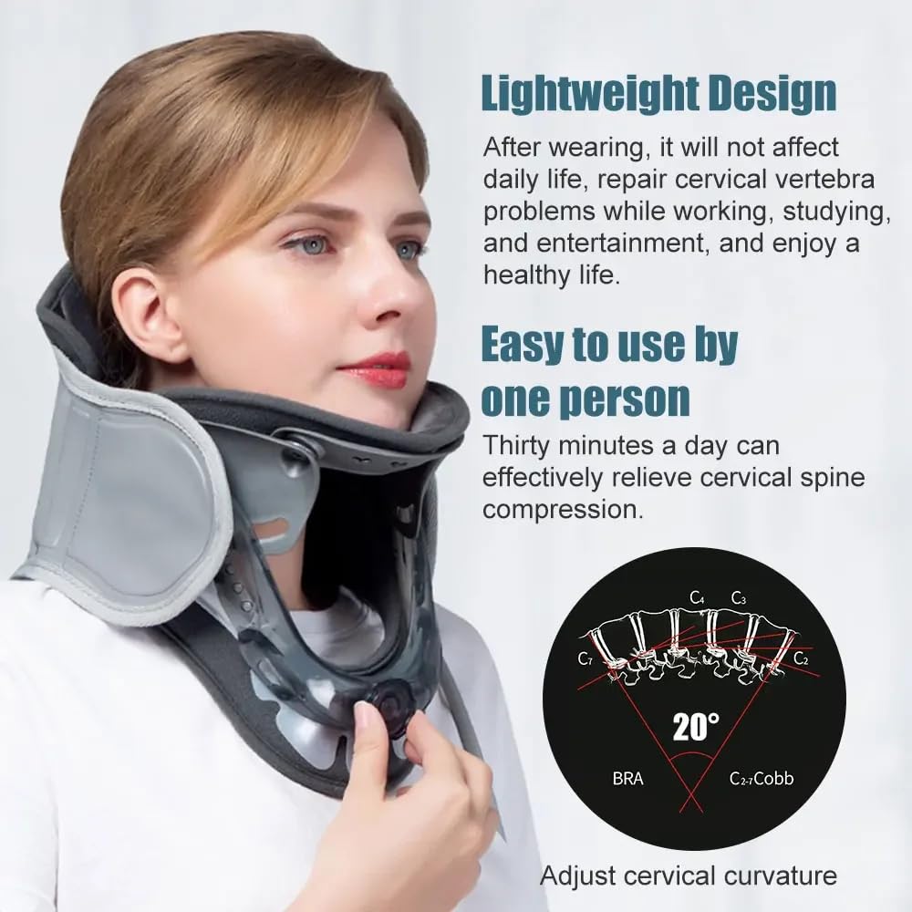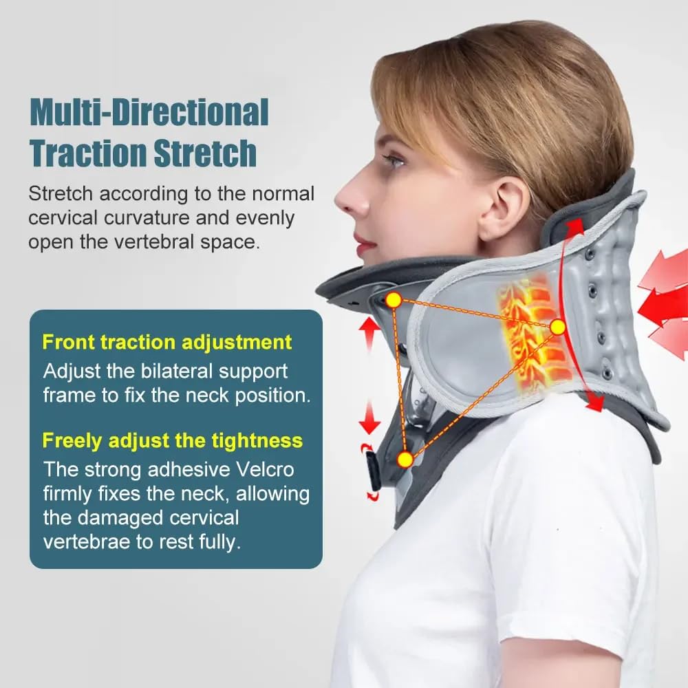 Večnamenska podpora: Kombinira funkcije vratne opornice, ortoze in trakcijskega sistema za zmanjšanje pritiska na živce in vretenca.