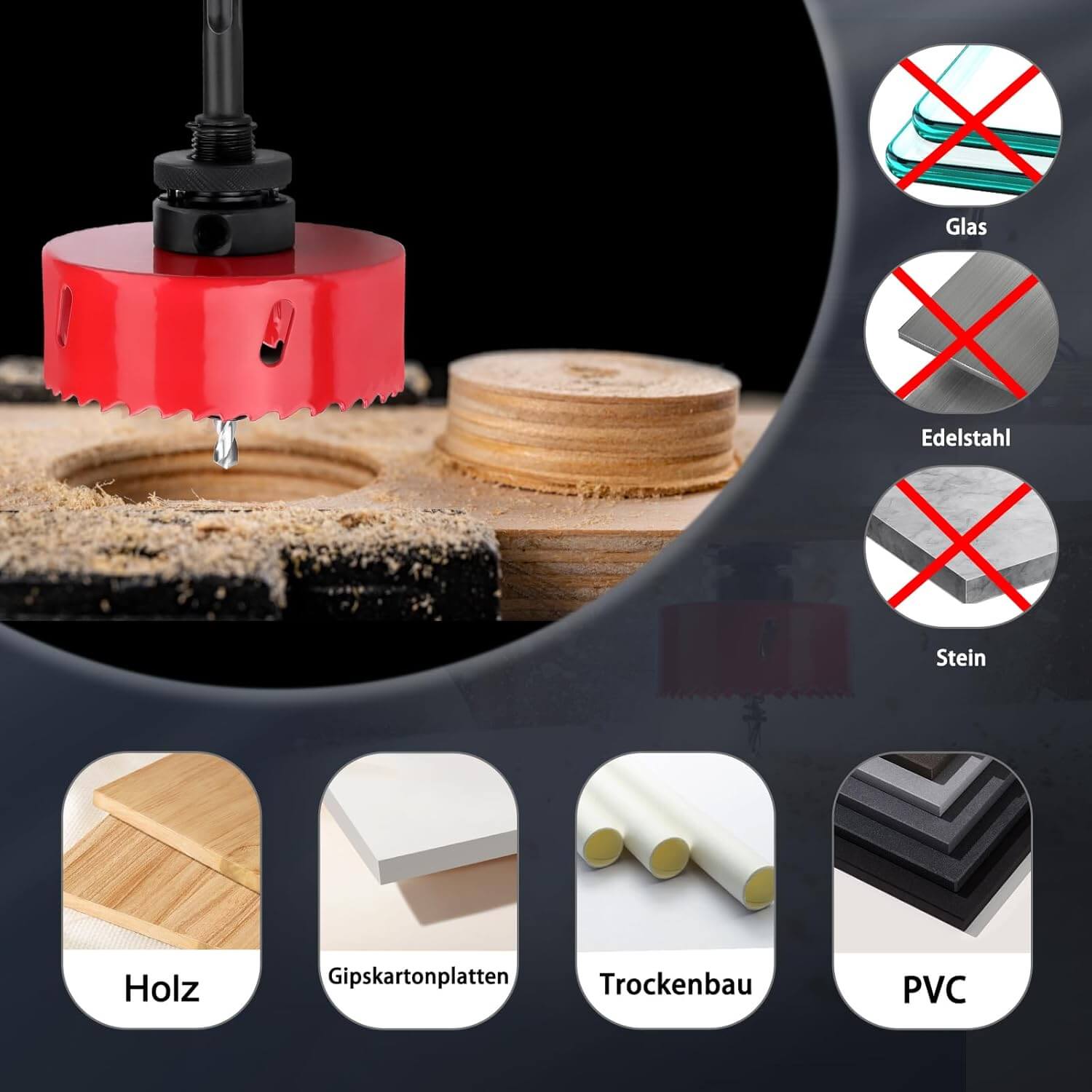 Široka uporaba: idealno za vrtanje lukenj v les, vezane plošče, plastiko, mavčne plošče in vlaknene plošče. Odlično za montažo ključavnic, gumbov, kablov ali preboje skozi pohištvo in stene.