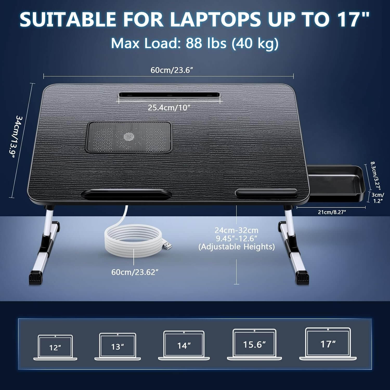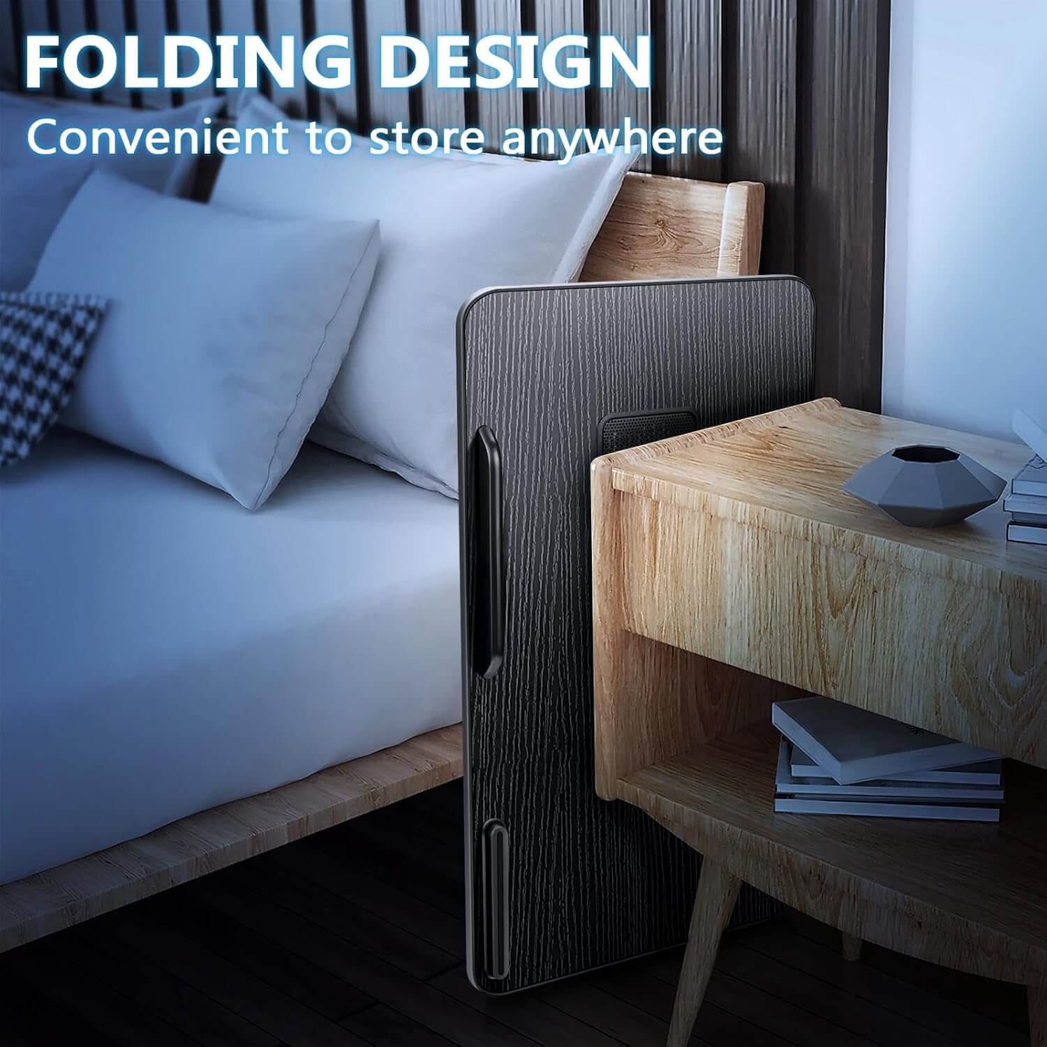 Večnamenska in praktična miza je zasnovana za udobno delo, branje ali sproščanje kjerkoli – na postelji, kavču ali tleh. Z nastavljivo višino, prilagodljivim kotom in vgrajenim hladilnim ventilatorjem za prenosnik omogoča ergonomsko in učinkovito uporabo.
