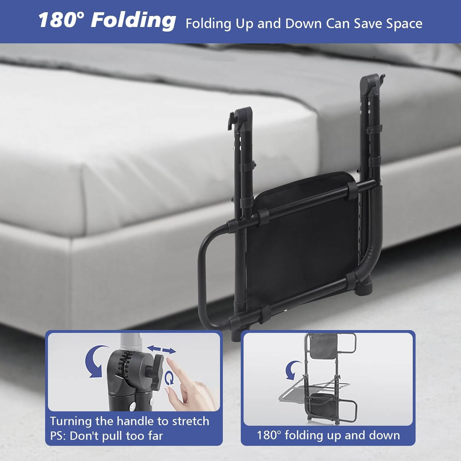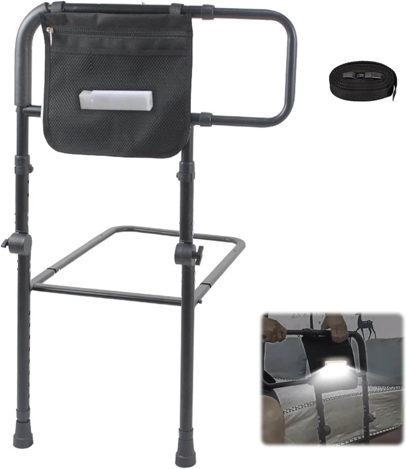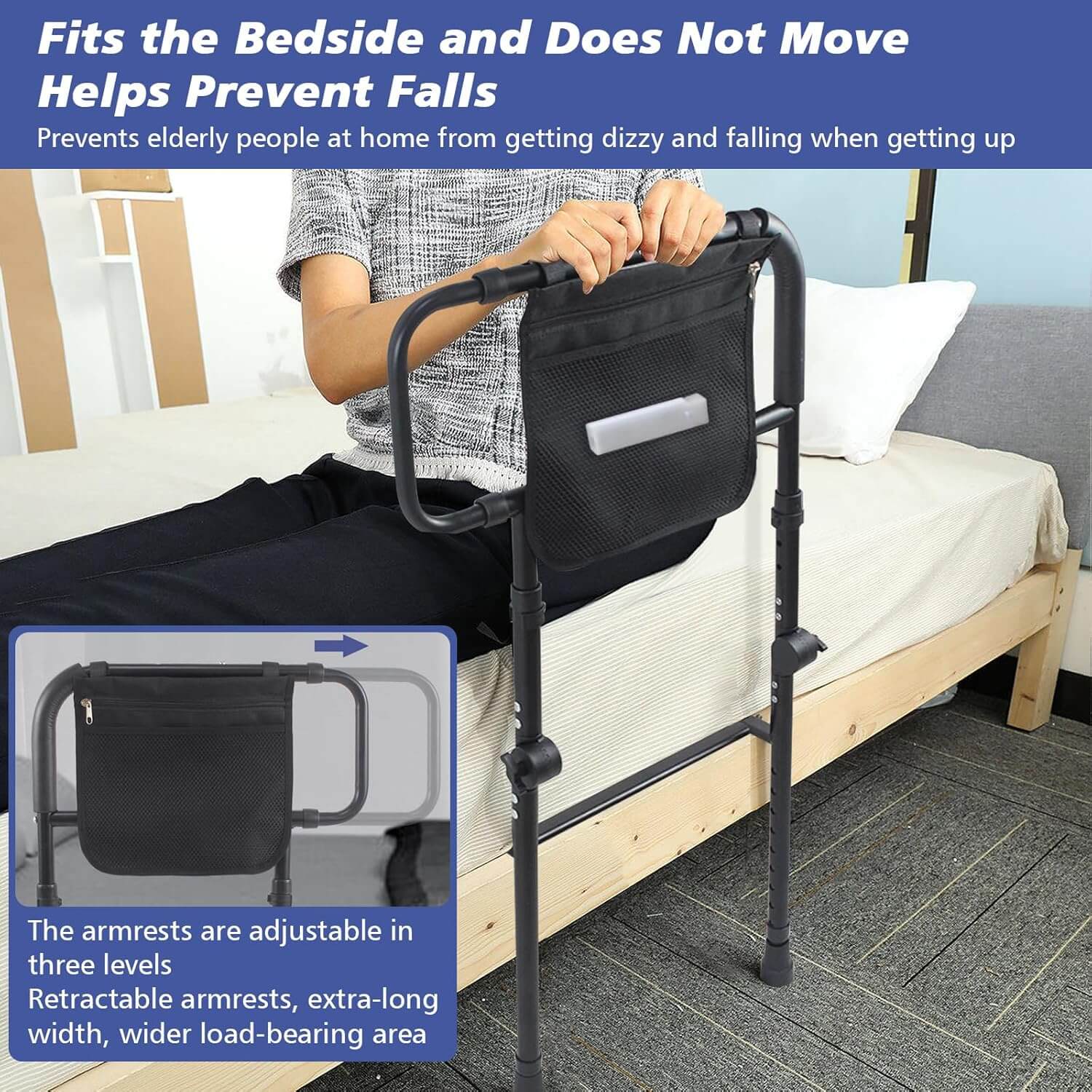 Stabilna in vsestransko nastavljiva posteljna ograja z razširjenimi ročaji nudi učinkovito podporo pri vstajanju, obračanju in preprečevanju padcev med spanjem. Nastavljiva po višini, z nedrsečim oblazinjenjem, varnostnimi trakovi ter vgrajeno senzor LED lučko, ki se samodejno prižge v temi, je idealna za starejše, osebe v rehabilitaciji ali vsakogar, ki potrebuje dodatno varnost ob postelji.