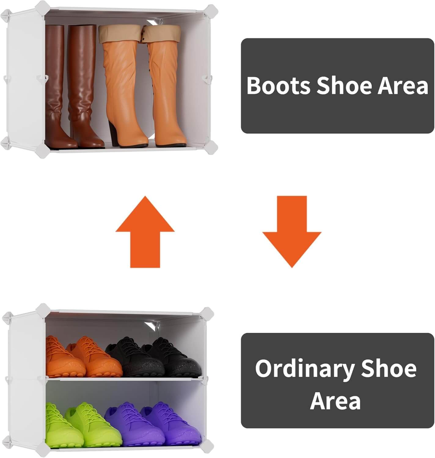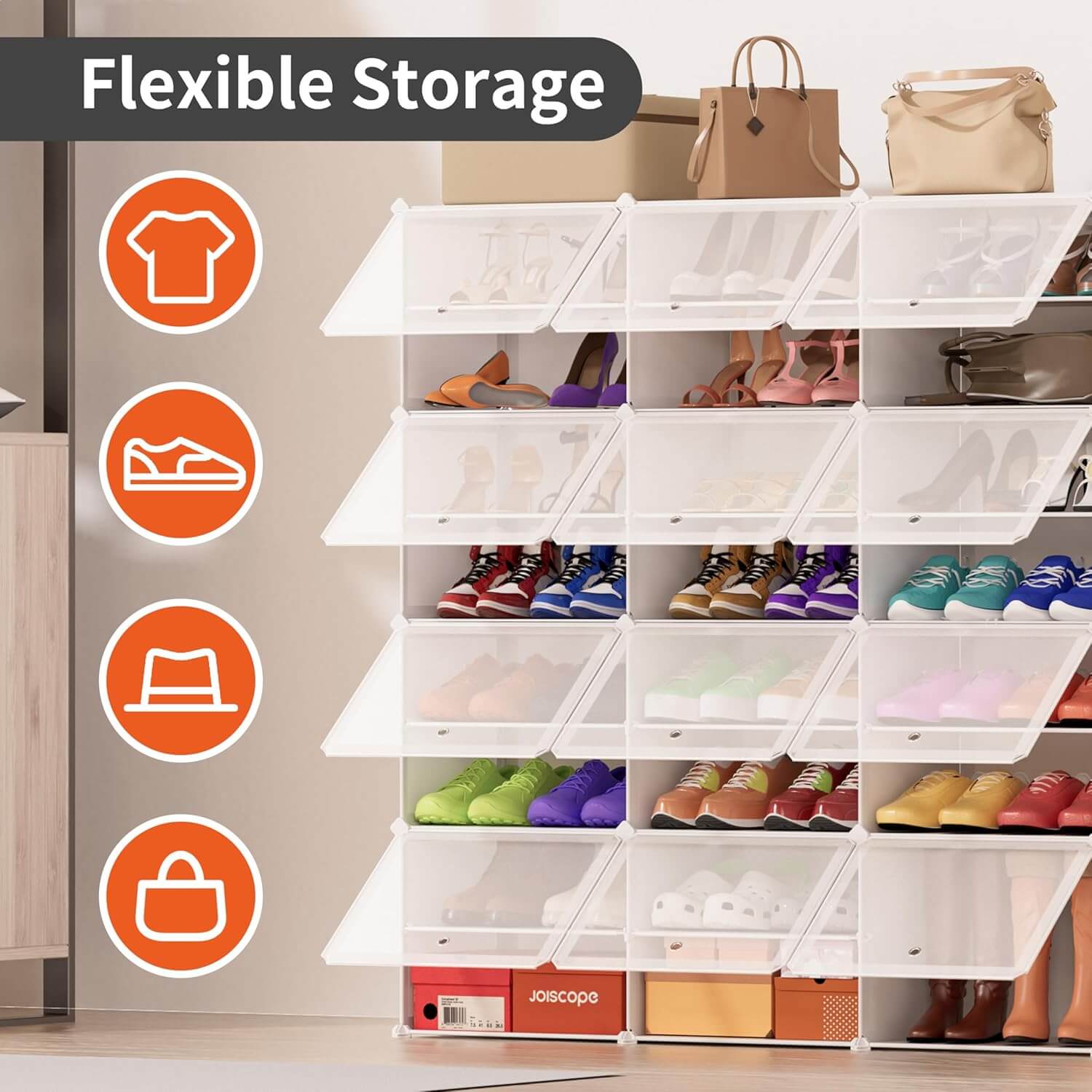 Večnamenska uporaba: odstranljive pregrade omogočajo shranjevanje tudi drugih predmetov, kot so torbice, posteljnina, knjige ali dodatki. Primerna za hodnik, spalnico, garderobo ali dnevno sobo.