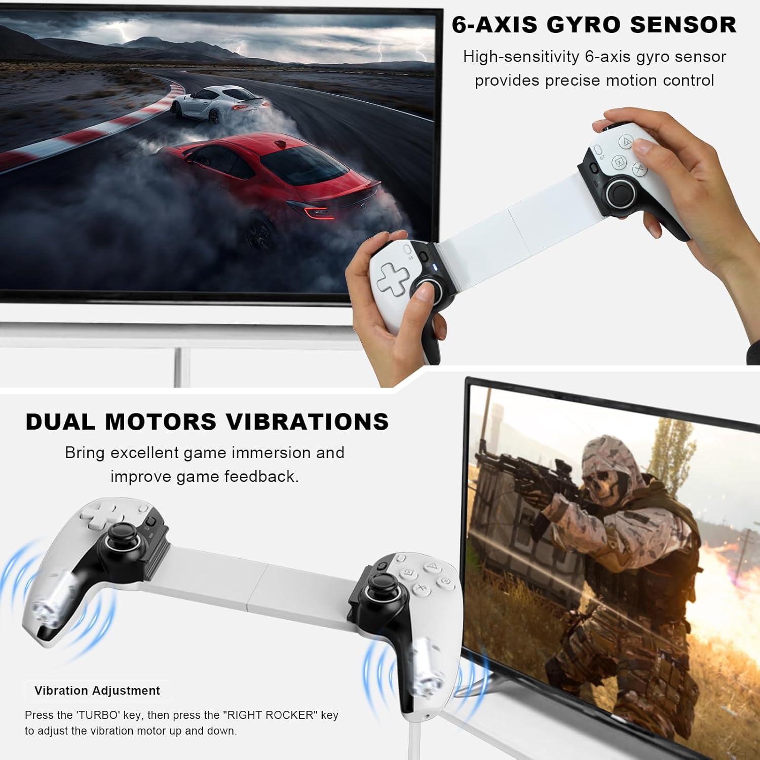 Turbo funkcija in dvojna vibracija: Omogočata realistično povratno informacijo in izboljšano igralno izkušnjo.