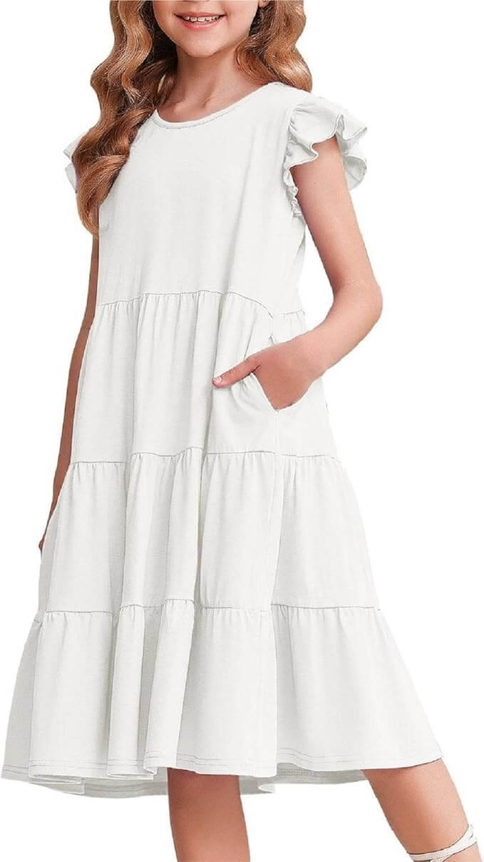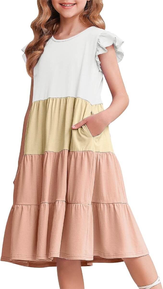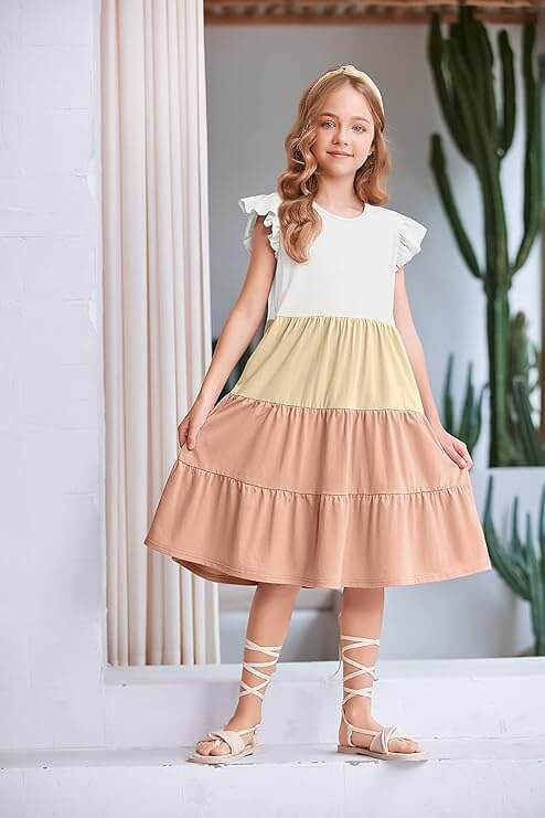 Arshiner dekliška poletna obleka združuje udobje, eleganco in funkcionalnost. Z volančastimi detajli, mehkim materialom in skritimi žepi je popolna izbira za sproščene poletne dni, praznične dogodke ali družinske izlete.