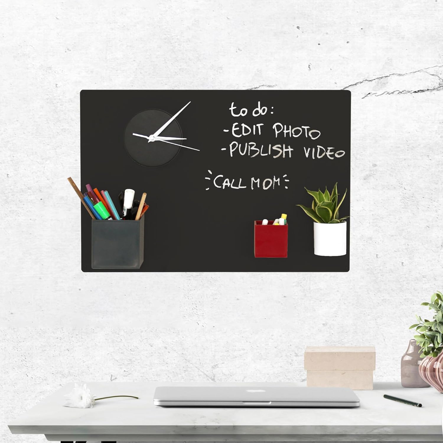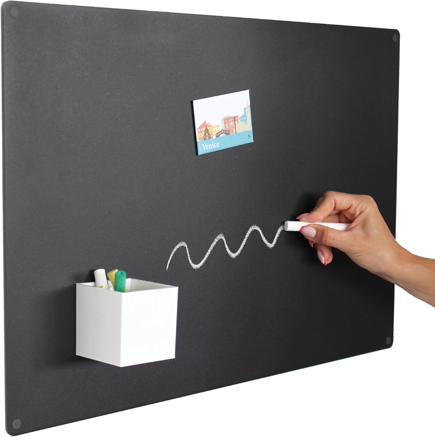 Elegantna in praktična magnetna tabla KalaMitica je popolna za dom, pisarno ali kuhinjo. Narejena iz kakovostnega jekla, omogoča pritrditev vseh vrst magnetov in hkrati deluje kot površina za pisanje s kredo. Odlična je za organizacijo, beležke, fotografije ali dekorativne namene.