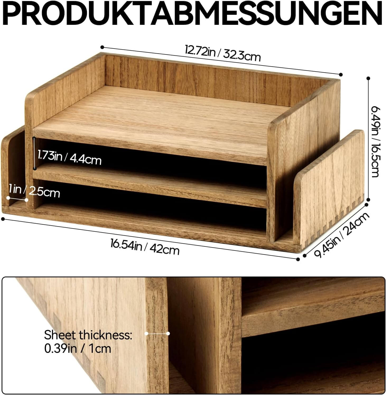 Varčno z razpoložljivim prostorom: Trije nivoji omogočajo učinkovito razvrščanje dokumentov, map in pošte, ne da bi zavzeli preveč prostora na mizi.