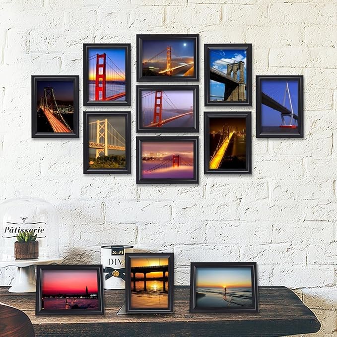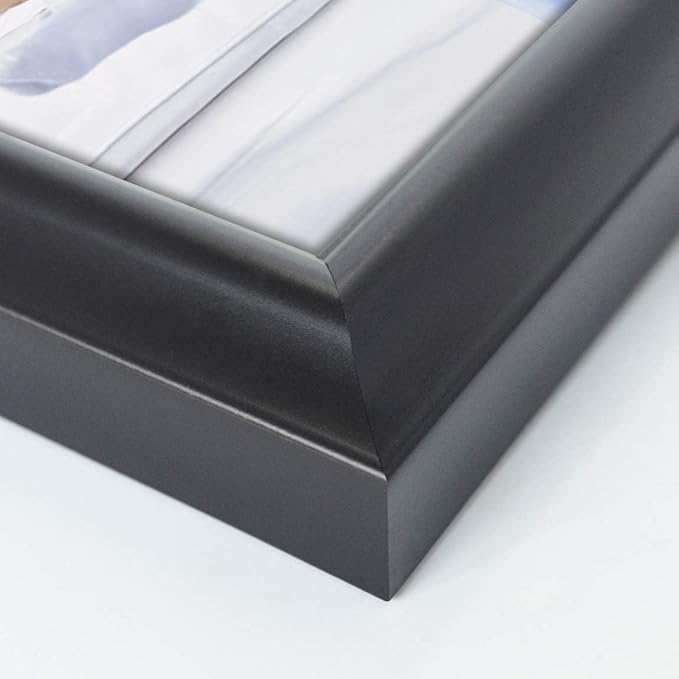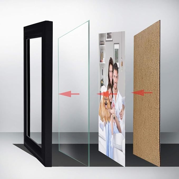 Črni okvirji s stekleno zaščito nudijo preprosto in elegantno rešitev za razstavljanje spominov.