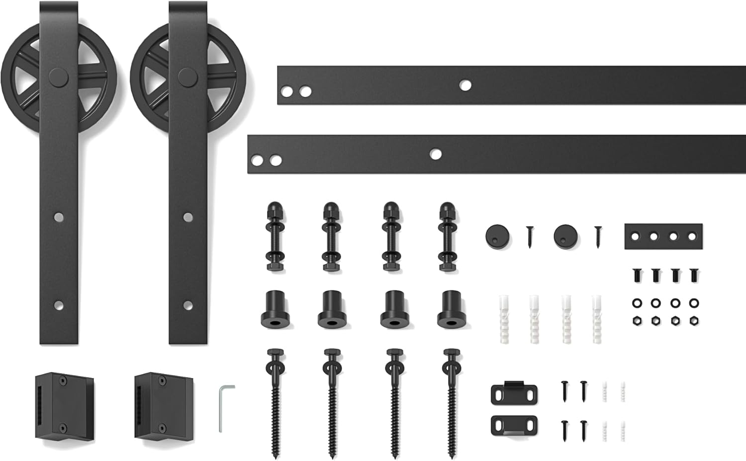 Težka in robustna konstrukcija zagotavlja zanesljivo podporo za vrata do 120 kg. Komplet vključuje vse potrebne elemente za montažo, med drugim 66-palčno ogrodje iz ogljikovega jekla in kakovostne nylon kolesce, ki zagotavljajo tiho in gladko drsenje. Primeren je za vrata s širino do 84 cm in debelino od 3,5 do 4,5 cm.